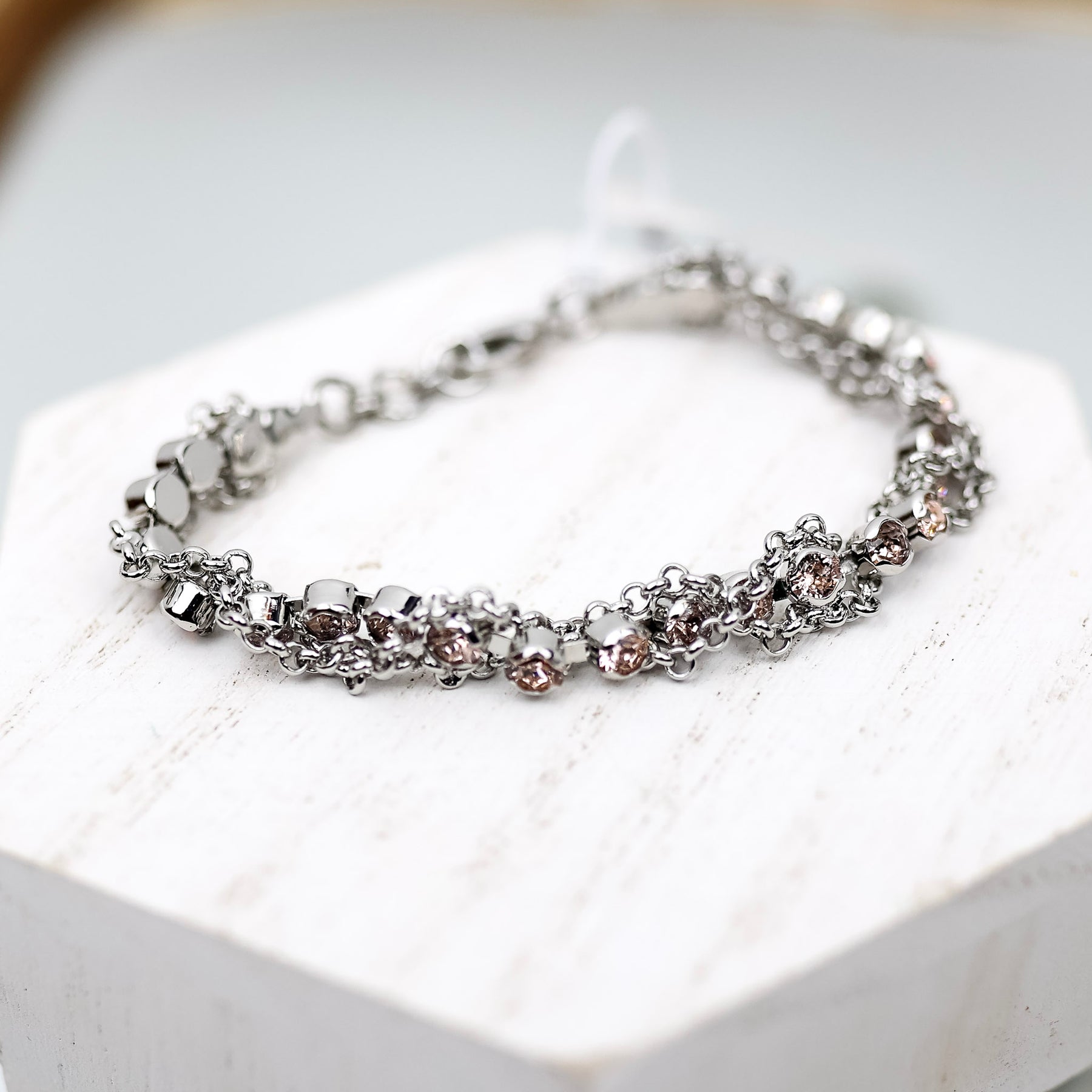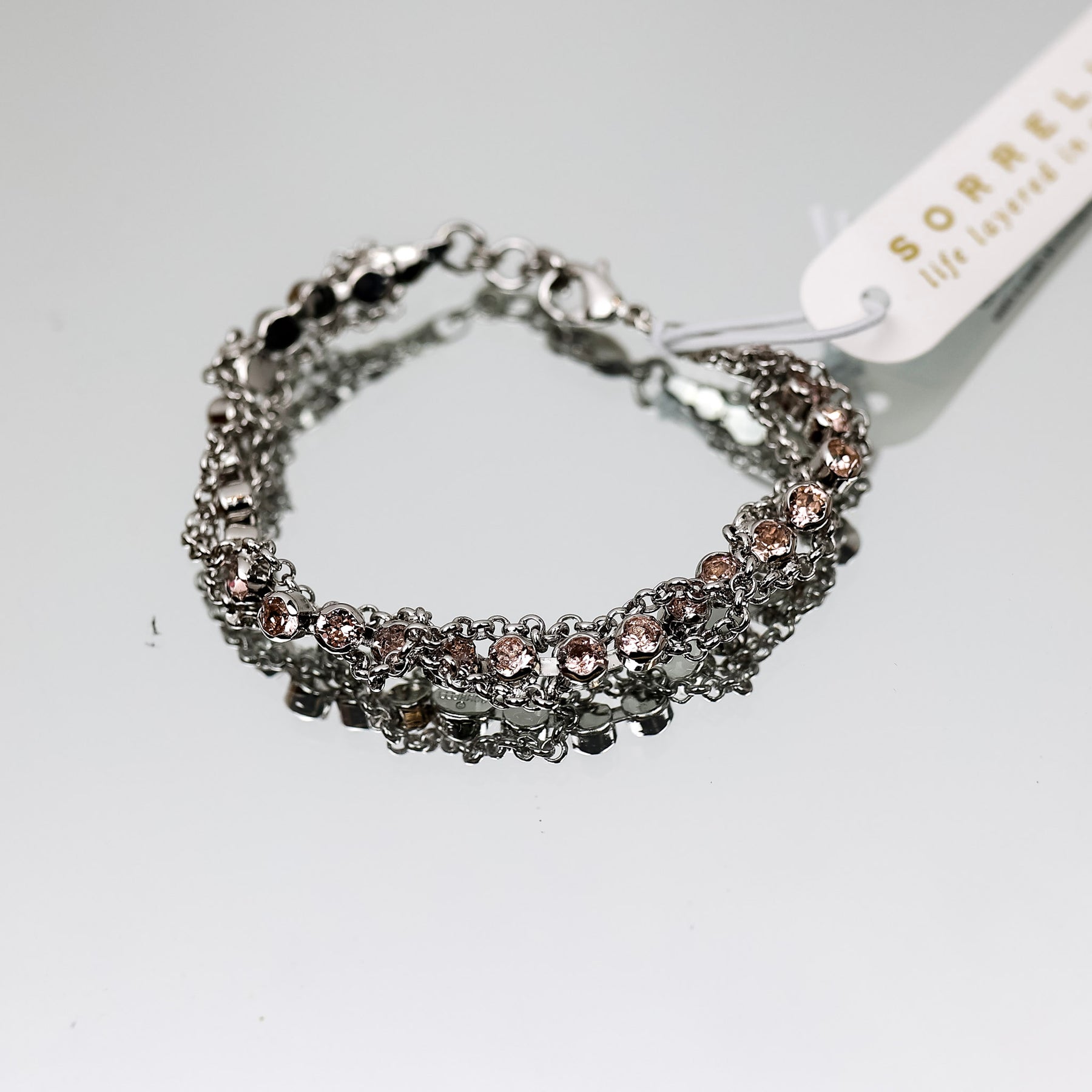 The Brandi Classic Tennis Bracelet features a classic crystal studded line bracelet, elevated with a braided chain design. From Sorrelli's Snow Bunny collection in our Palladium finish. This is hand crafted and elegantly designed to make each Sorrelli piece special.