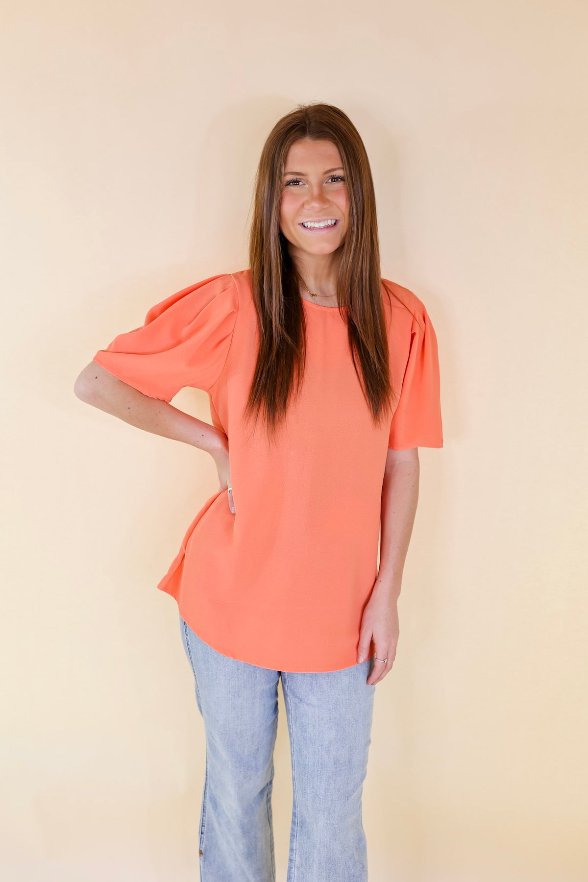 Share The Love Pleated Short Sleeve Top in Coral Orange