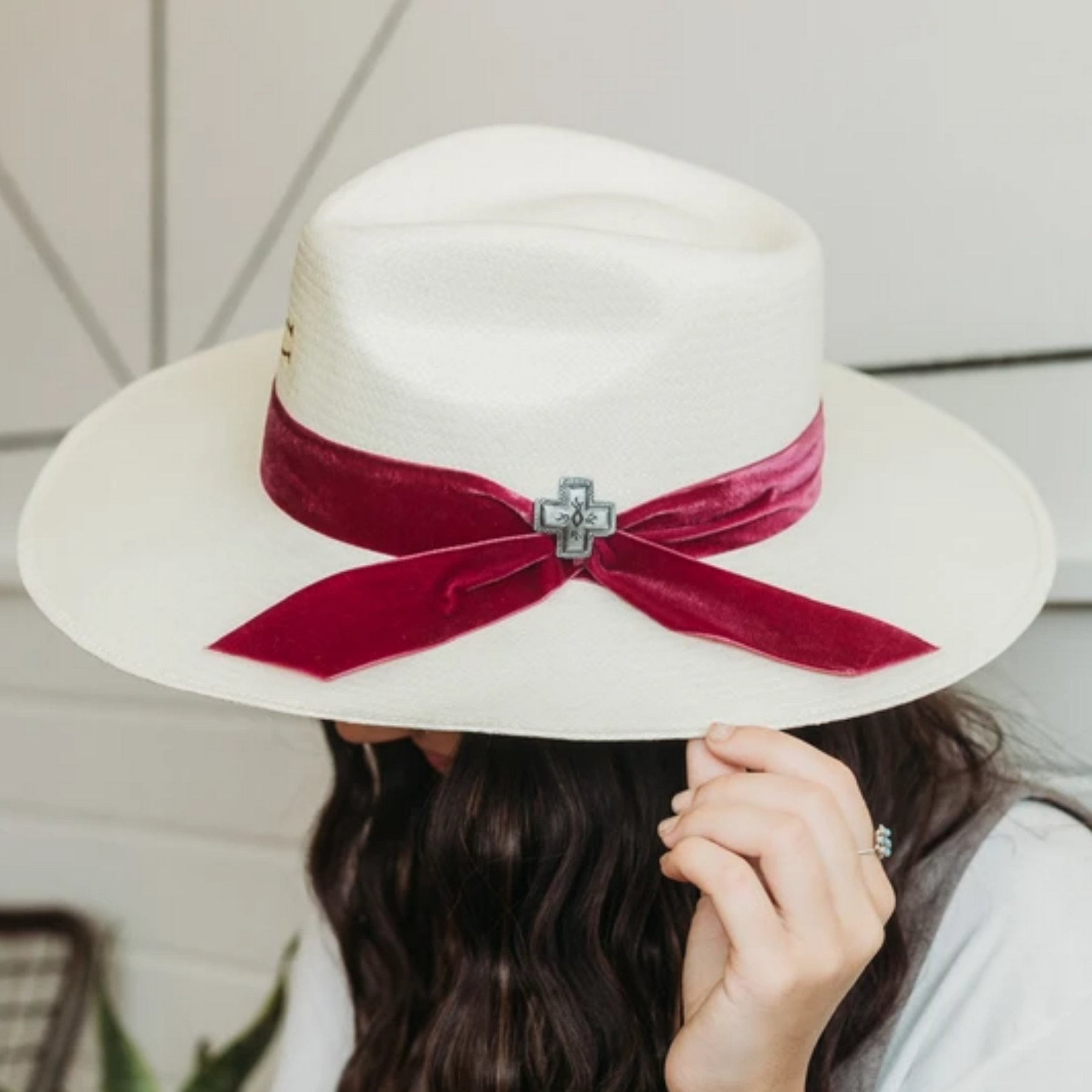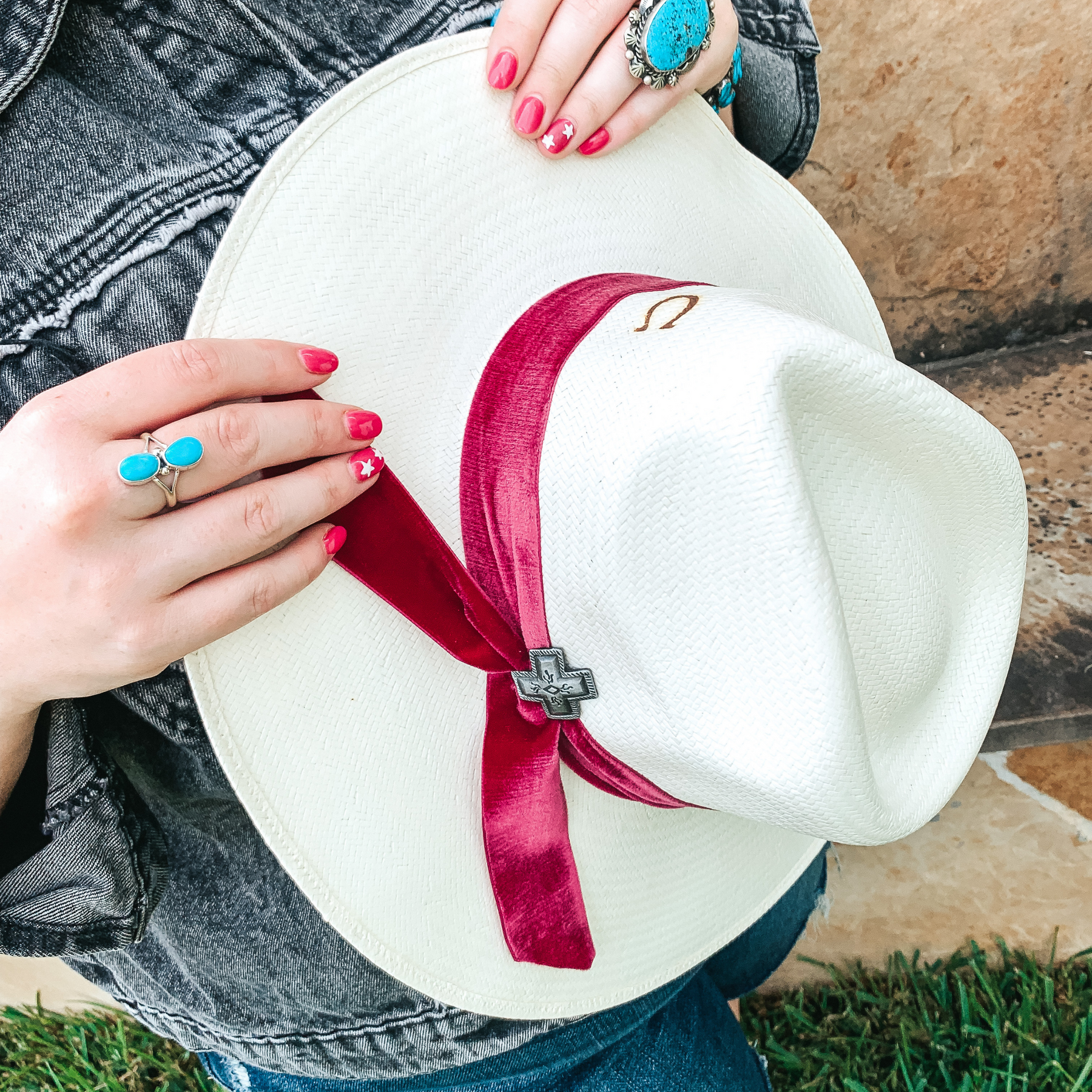 Charlie 1 Horse | Truth Straw Hat with Burgundy Velvet Ribbon Band and Barbosa Cross Concho Pin - Giddy Up Glamour Boutique