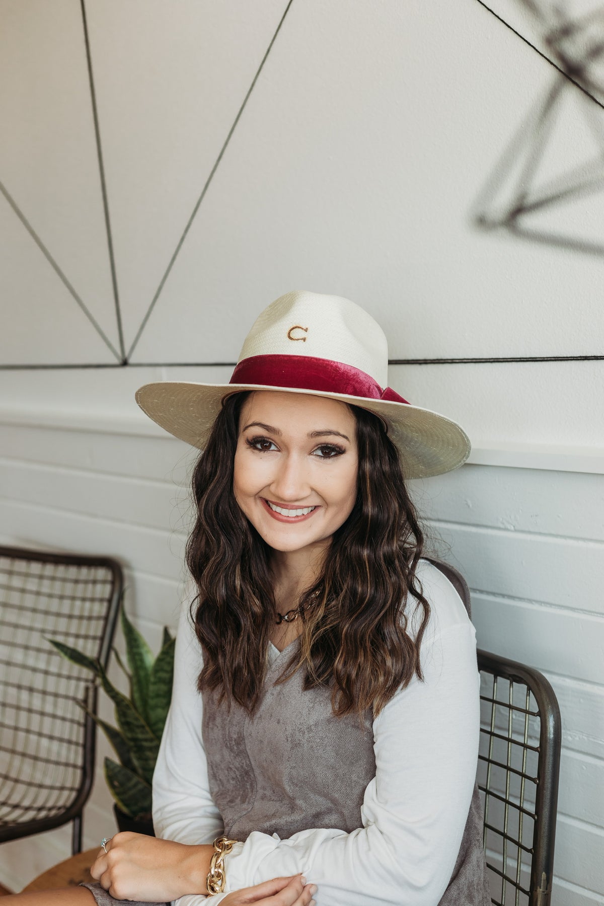 The Truth hat by Charlie 1 Horse features straw material, a pinched front profile, a 3 1/2 inch brim, and a crown that measures 4 inch.  The hatband is an elegant burgundy velvet material that fits perfectly around the base of the crown and includes a barbosa cross concho pin to attach to the band. This genuine Charlie 1 Horse hats bears the brand "C," a sign that you are getting a quality made authentic Charlie 1 Horse hat.  Please note that all hats are branded by hand by a hatmaker at Charlie 1 Horse, with that, all brands are intended to be off-centered.