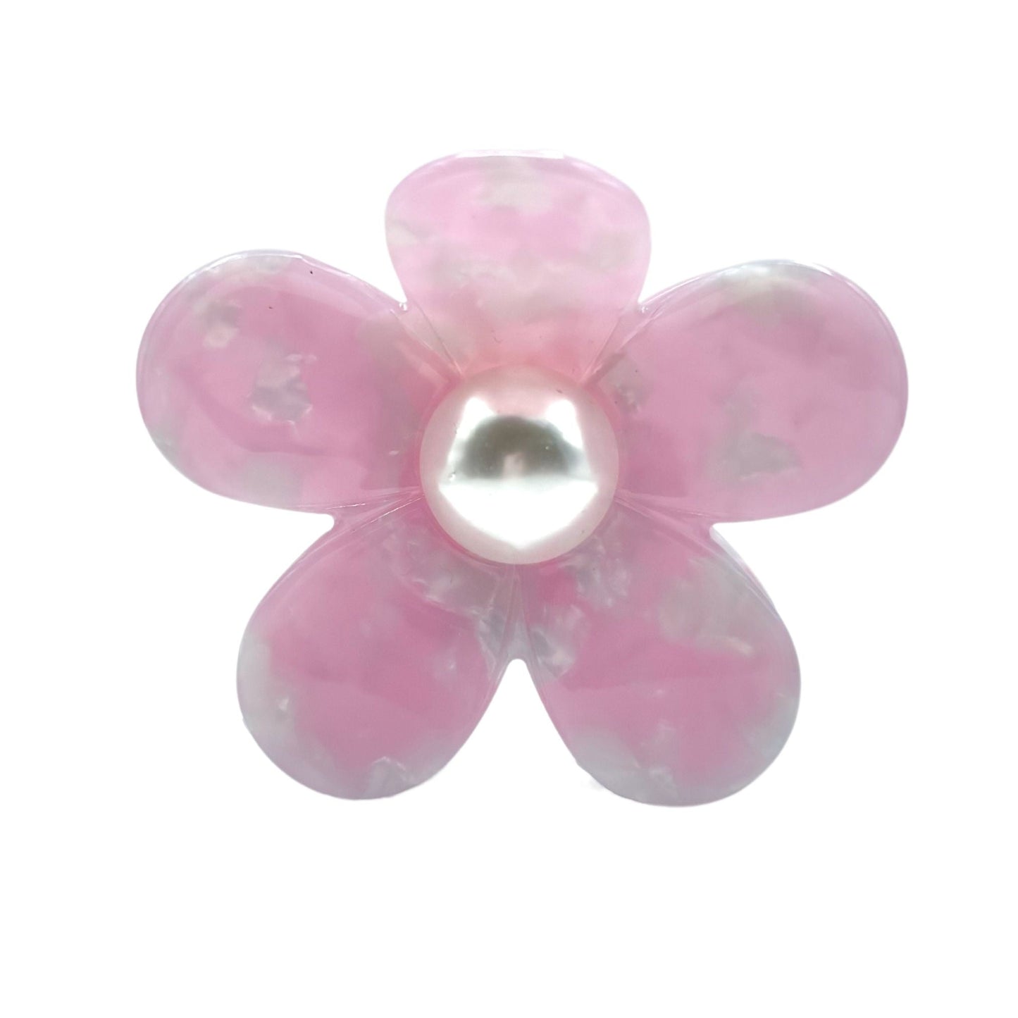 Linny Co | Gigi Flower Hair Clip in Pink with Pearl Center
