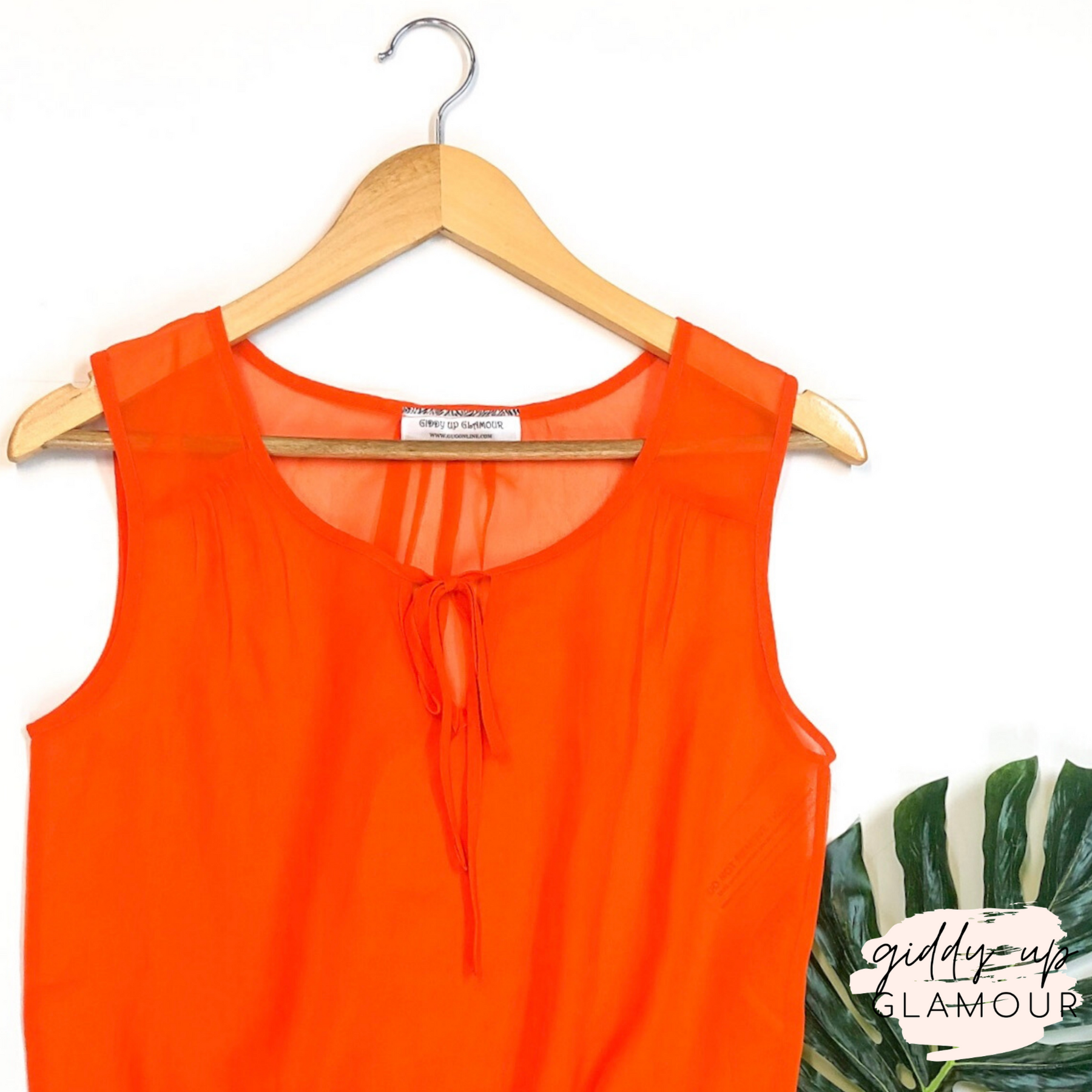 Last Chance Size Large | Sheer Peplum Tank Top with Keyhole Tie in Orange