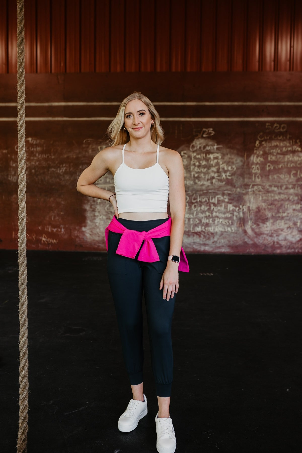 This new top is sure to keep you looking lit and fit! It includes a fitted body that is cropped, spaghetti straps, a racer back, and a built in sports bra that has removable pads. Our new active line has everything you need to stay stylish at the gym or stay comfy around the house! Josie is wearing a size small.