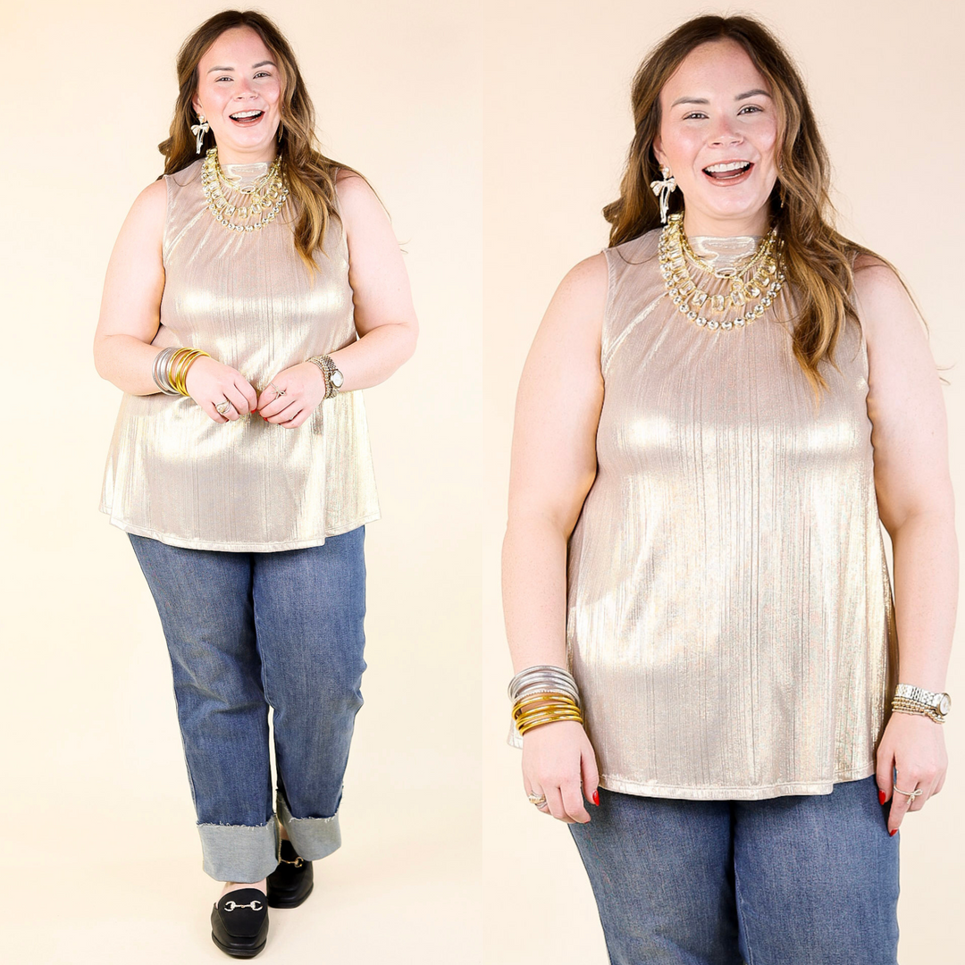 Extra Magic Mock Neck Metallic Tank Top with Tie Back in Gold