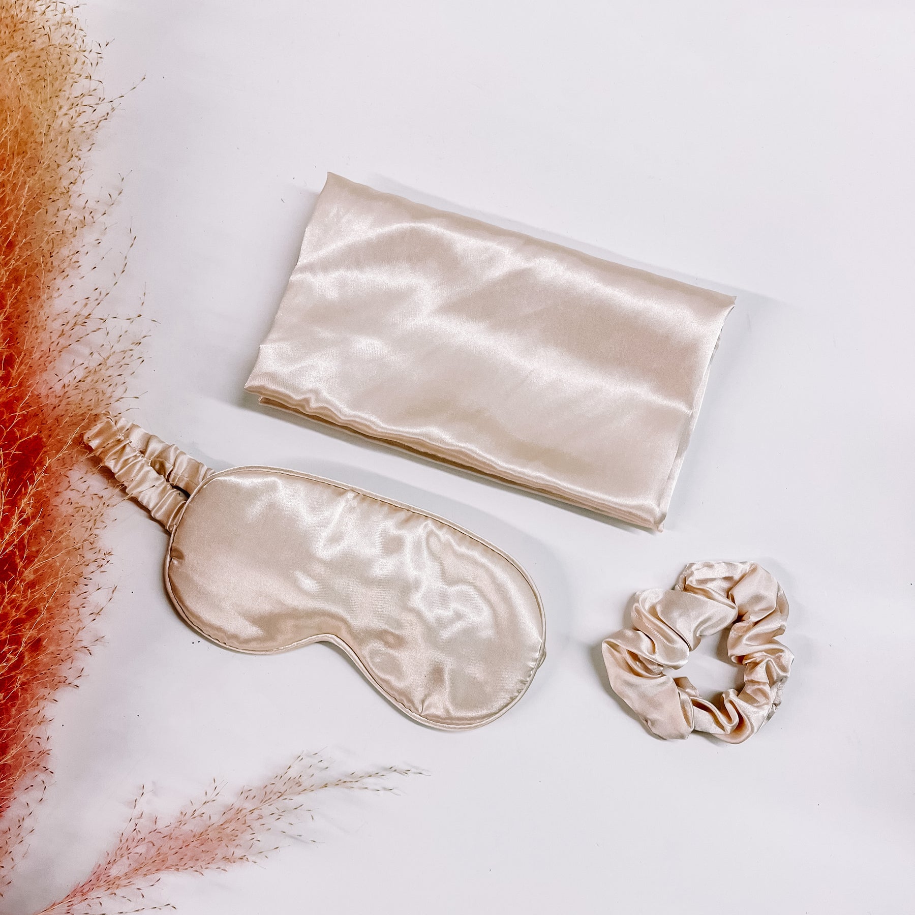 Satin pillow cases and scrunchies are all the rage right now!! Use these to keep your hair nice and healthy!! Set includes: satin pillow case, satin eye mask and satin scrunchie.