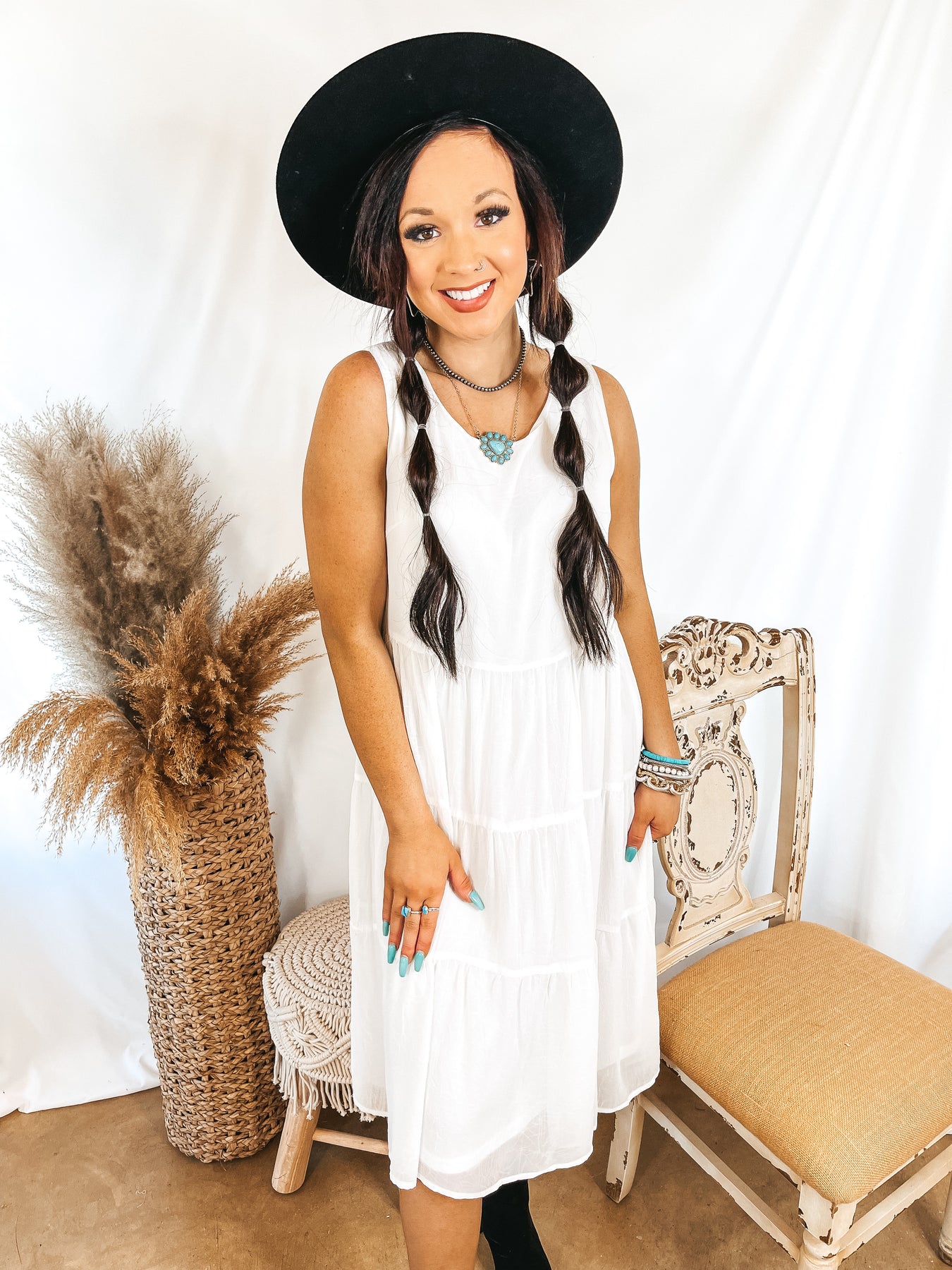 Mark My Words Tiered Tank Midi Dress in White
