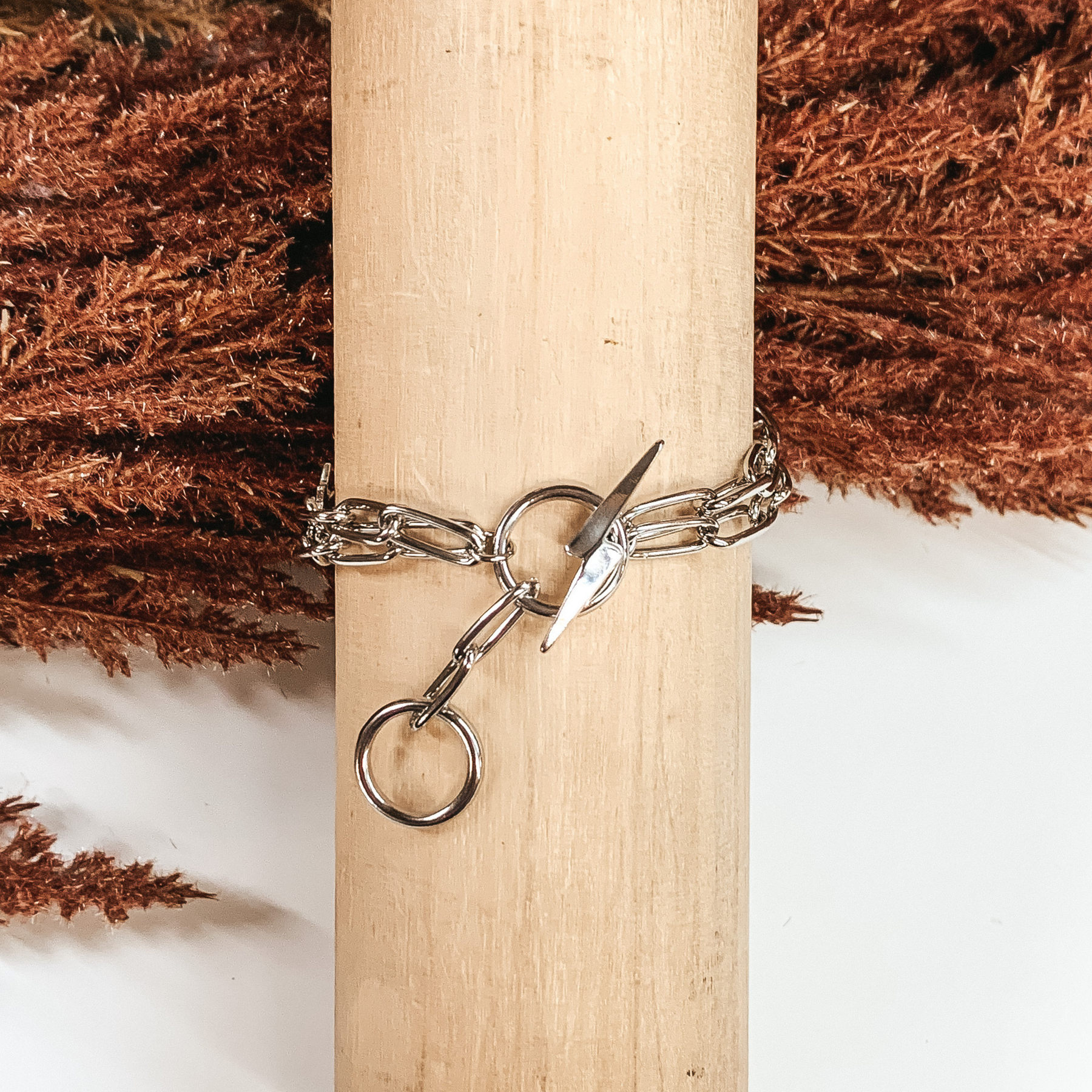 You'll have everyone falling for you while wearing this bracelet! This is one of our newest fav star bracelets! You have a silver double chain, tiny star pendants, and a lightning bolt pendant to hold the bracelet together.