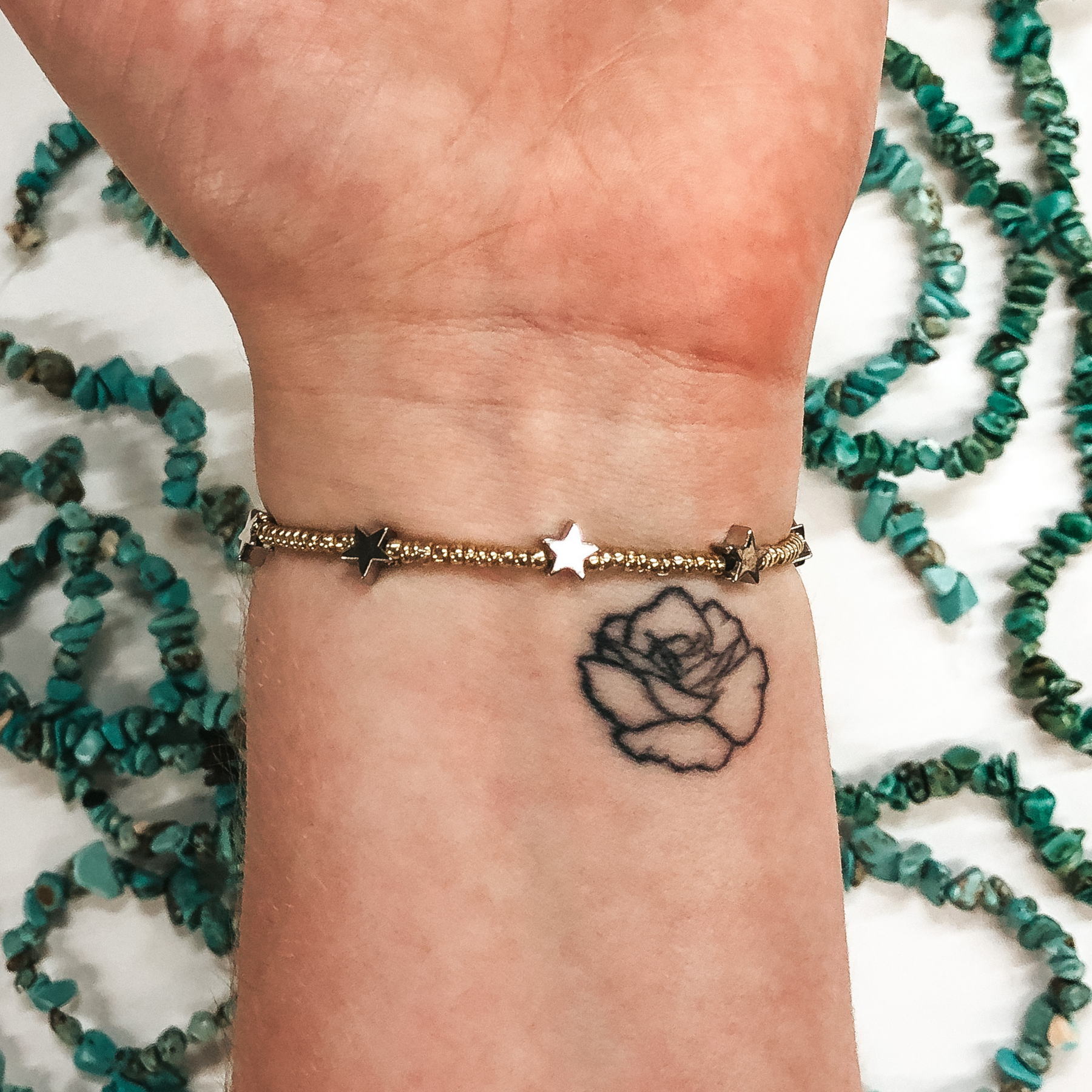 Lucky Stars Gold Beaded Bracelet with Silver Stars
