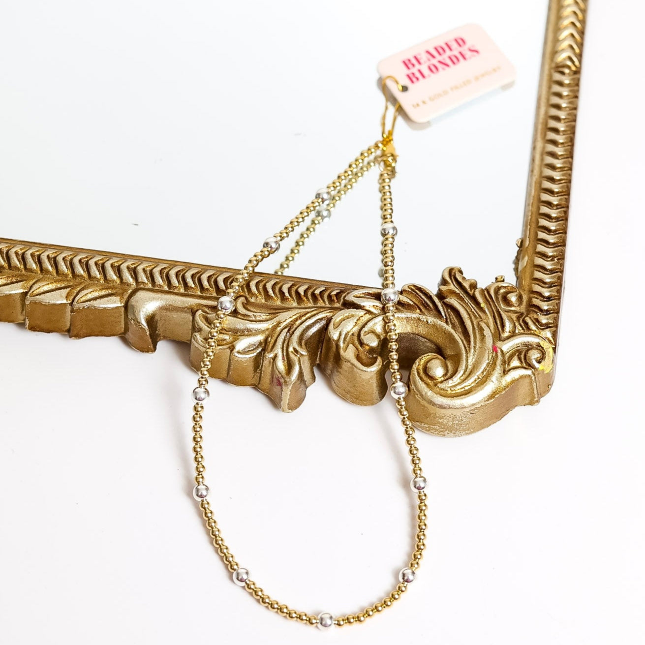 This is a mix of our 3MM 14k gold-filled beads and 5MM sterling silver beads making the perfect necklace.