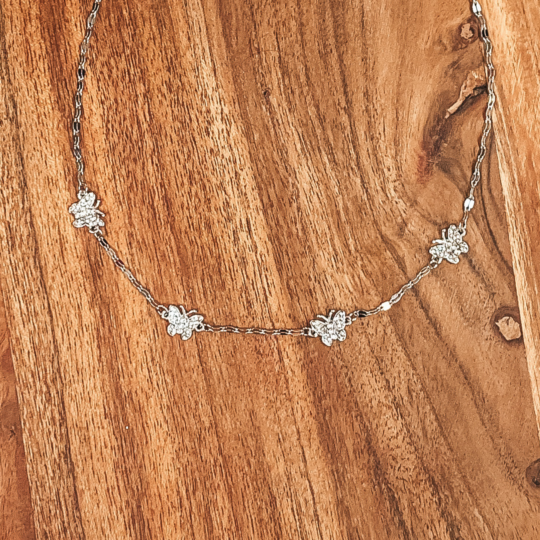 Float Like a Butterfly Crystal Pendant Necklace in Silver