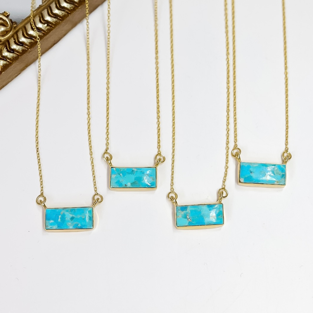 Hada Collection | Handmade 14k Gold & Kingman Turquoise Mini Bar Pendant Necklaces