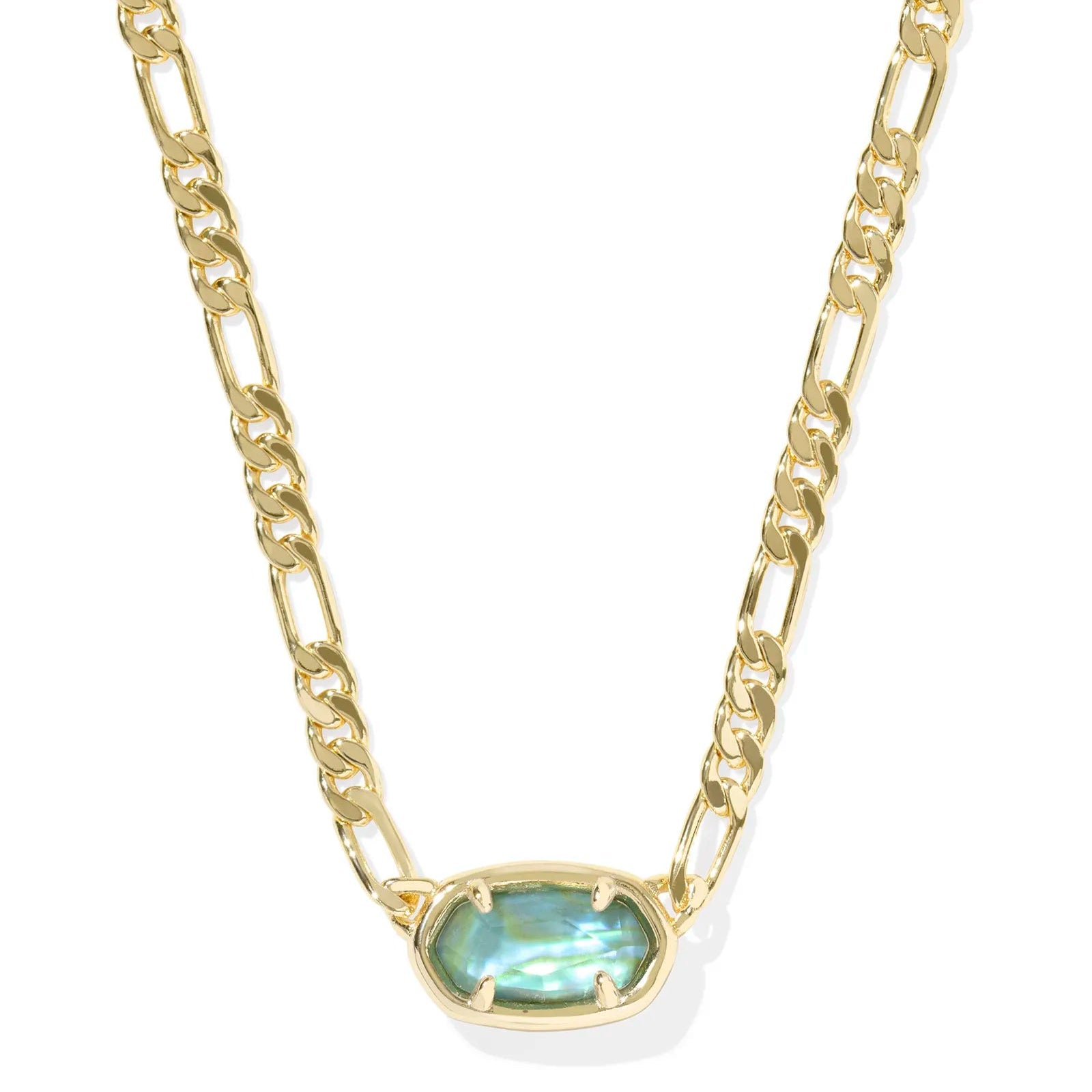 Kendra Scott | Elisa Gold Figaro Chain Short Pendant Necklace in Deep Aqua Illusion
