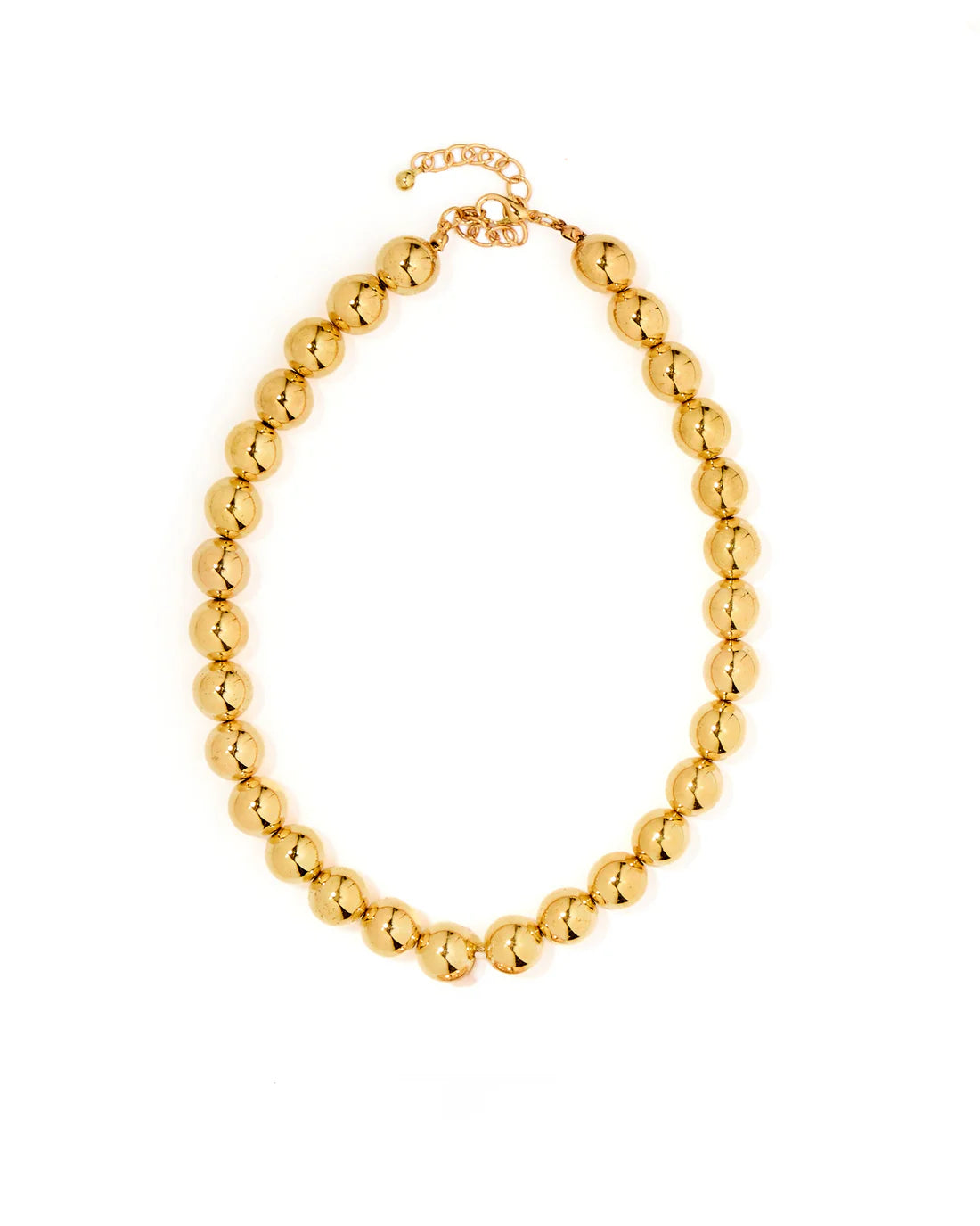 Lizzy in gold is a 17in gold ball necklace with a 3in extender.