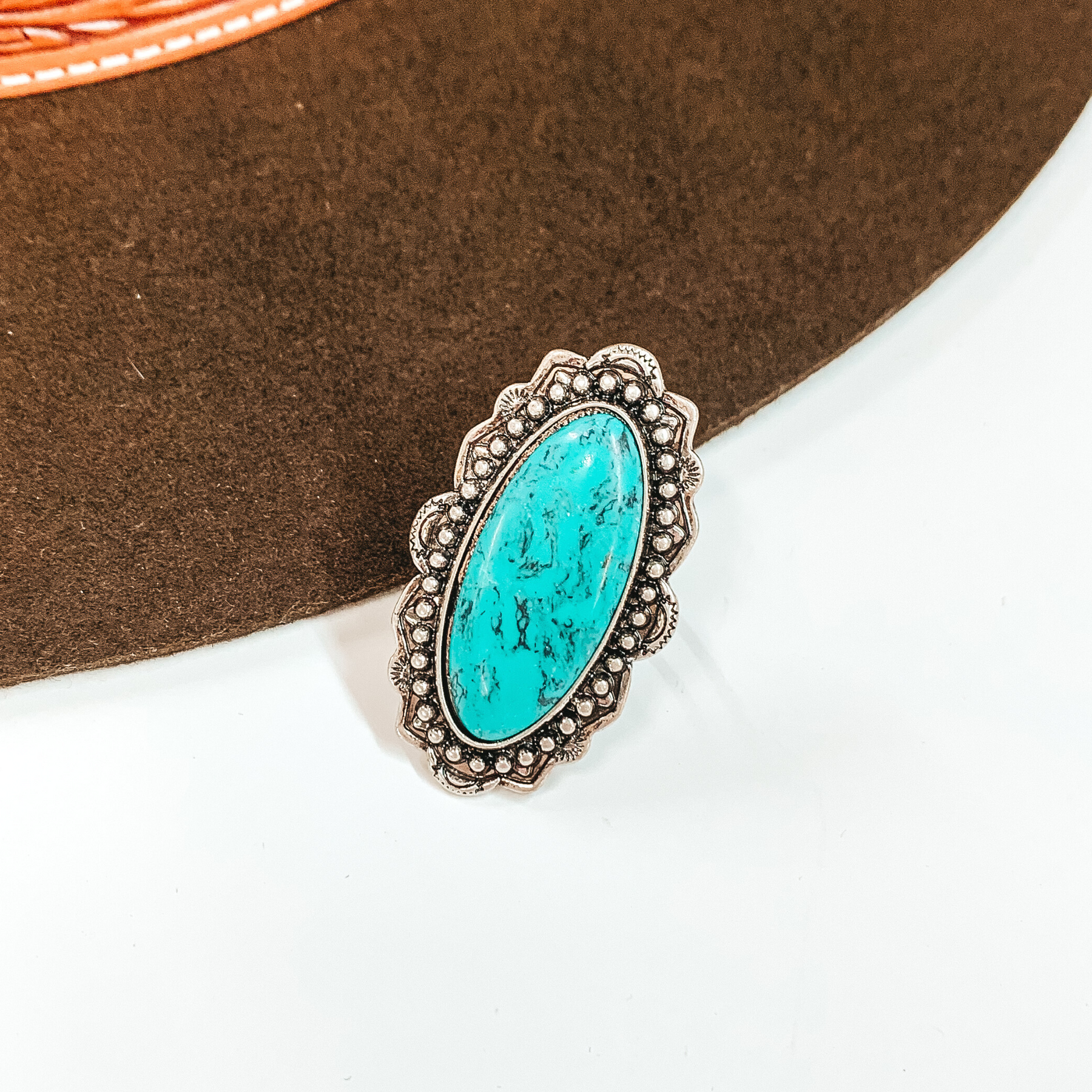 Oval Stone with Silver Tone Detailing Cuff Ring in Turquoise