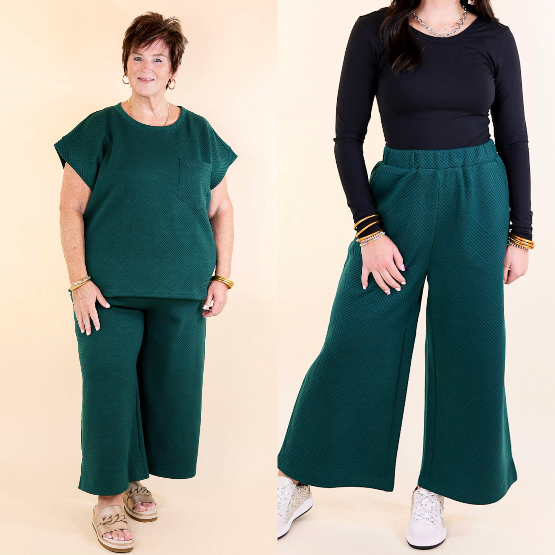 Glamour on the Go Textured Wide Leg Pant in Forest Green