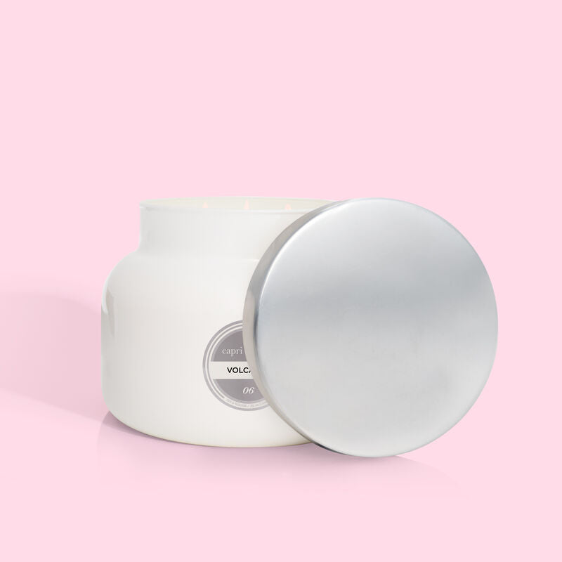 Big, bold, and unforgettable. The Volcano White Oversized Jar is a certified showstopper for any home. With its signature silhouette and the clean, bright look of our best-selling white jars, experience Volcano's energizing blend of sugared citrus and exotic fruits. This jar features 3 wicks for a bigger and better fragrance experience. It's a cult favorite for a reason!