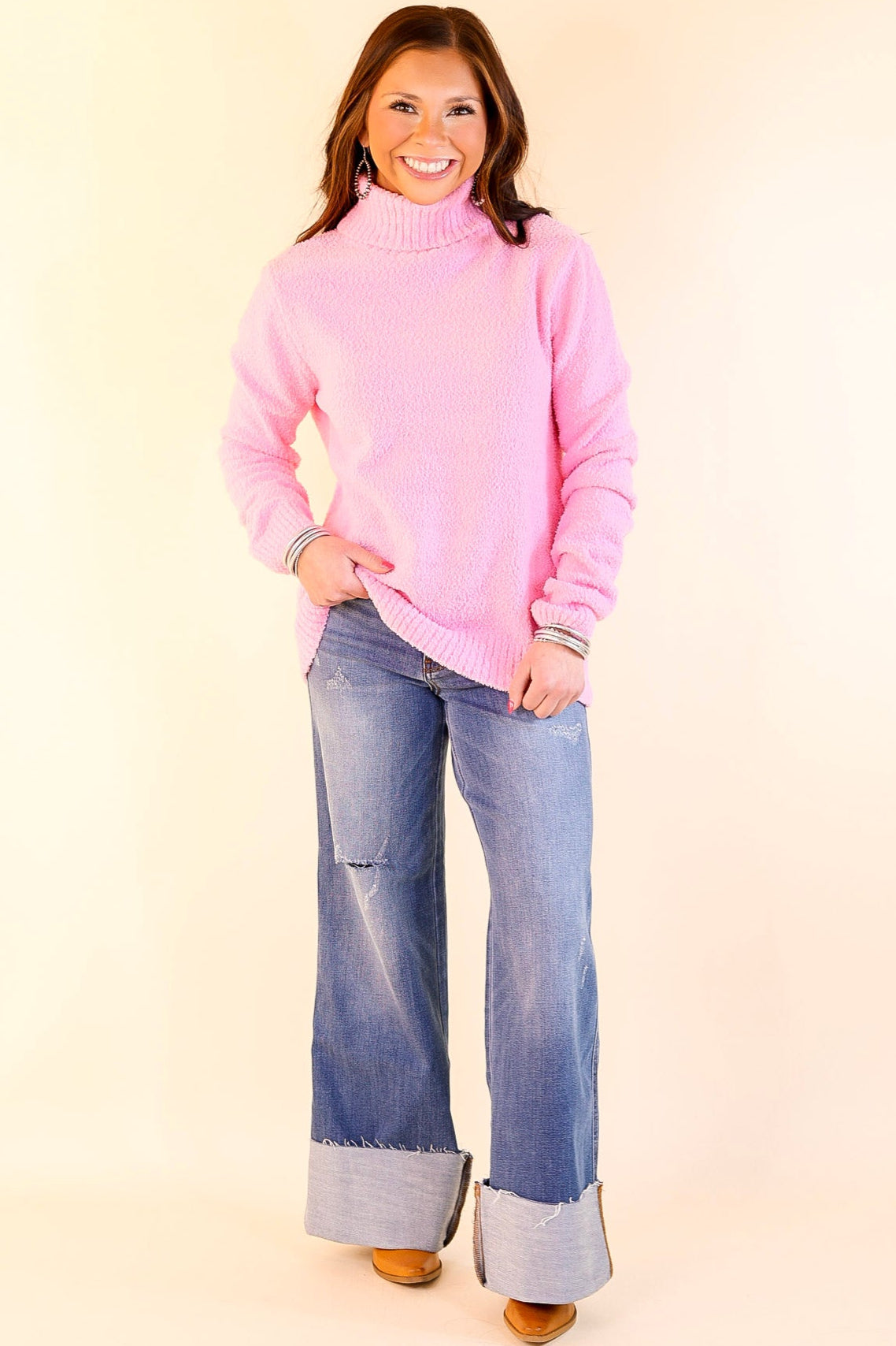 Cozy Couture Long Sleeve Turtleneck Sweater in Pink