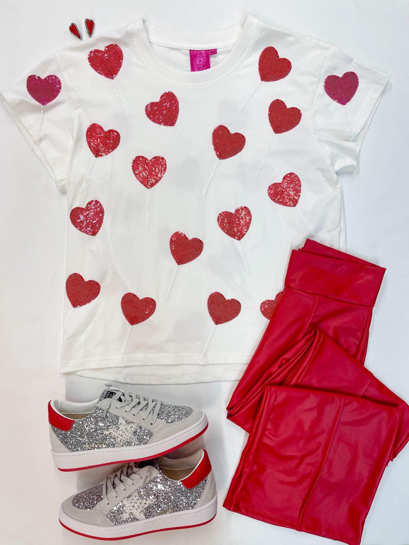 Queen Of Sparkles | Lollipop Lane Red and Pink Sequined Lollipops Top in White