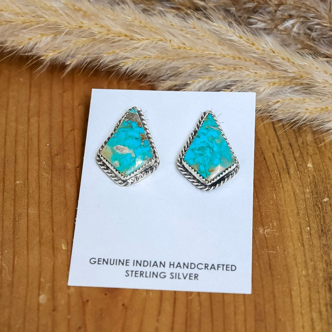 Judith Dixon | Navajo Handmade Sterling Silver Triangle Drop Earring with White Buffalo Stone
