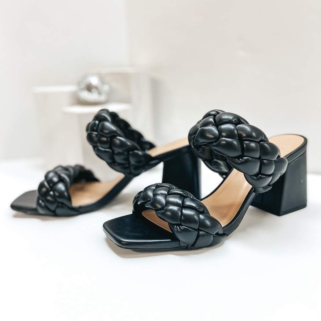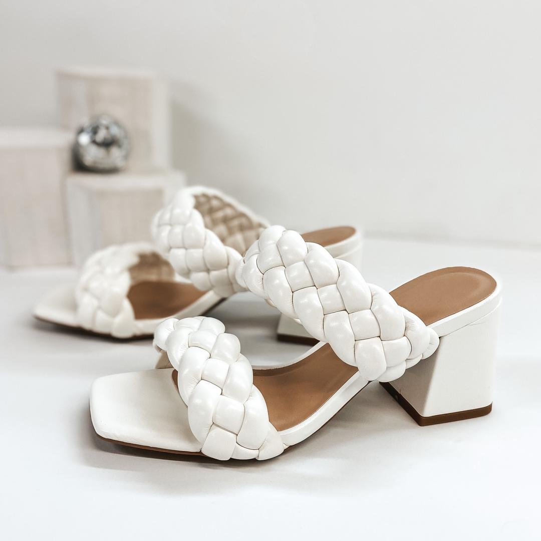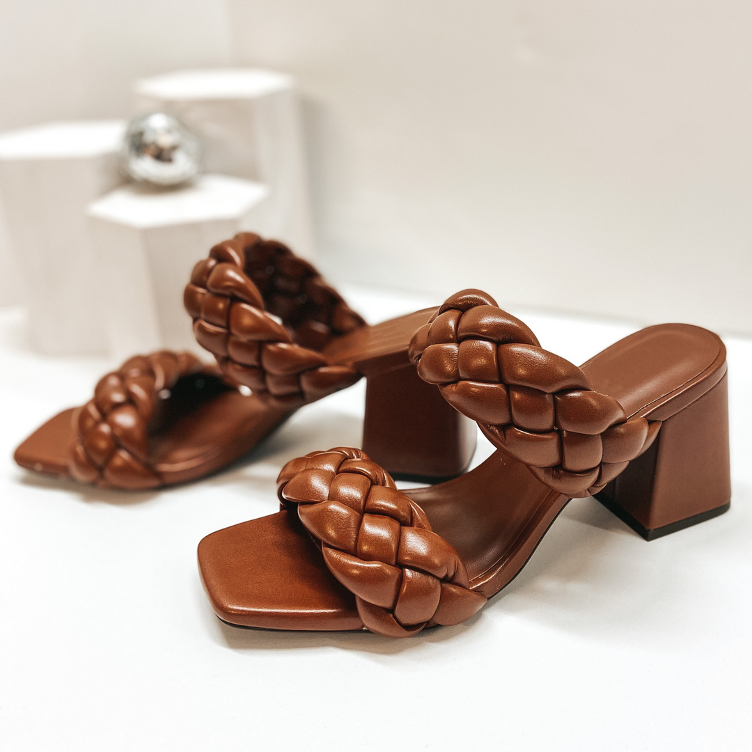 Living For Tonight Braided Two Strap Block Heels in Brown