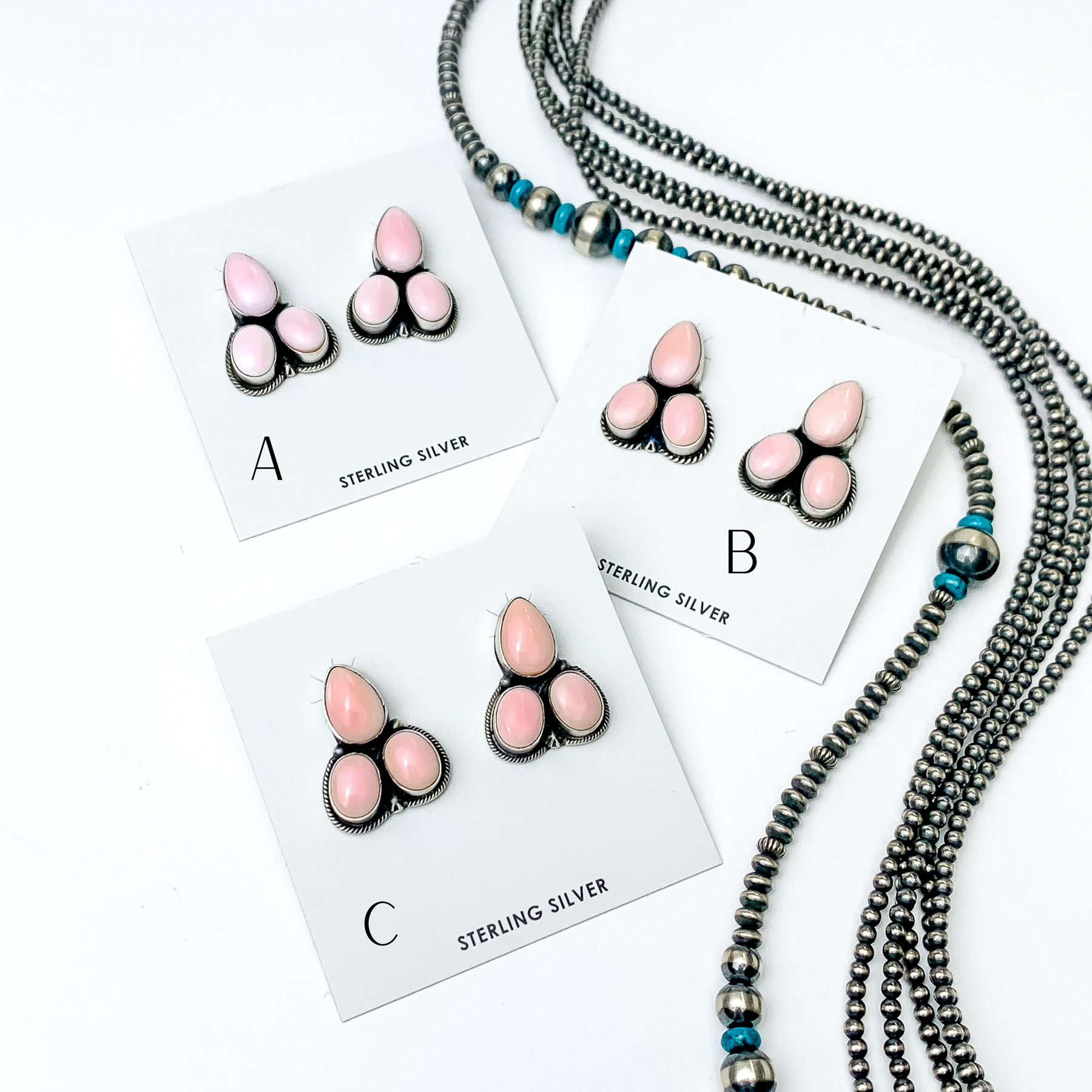 Letricia Largo | Navajo Handmade Sterling Silver Stud Earrings with Three Pink Conch Stones