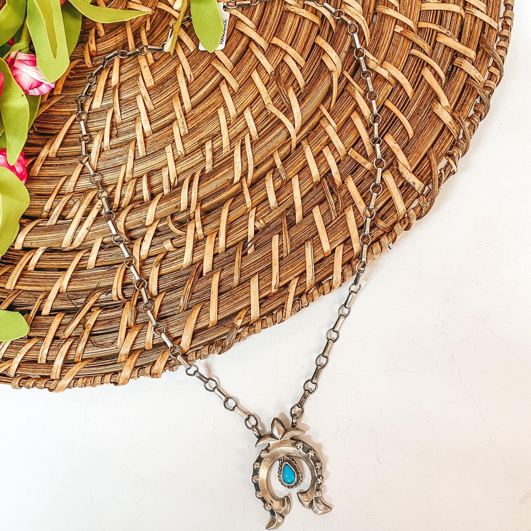 Annie Spencer | Navajo Handmade Sterling Silver Chain Necklace with Naja Pendant with Turquoise Stud