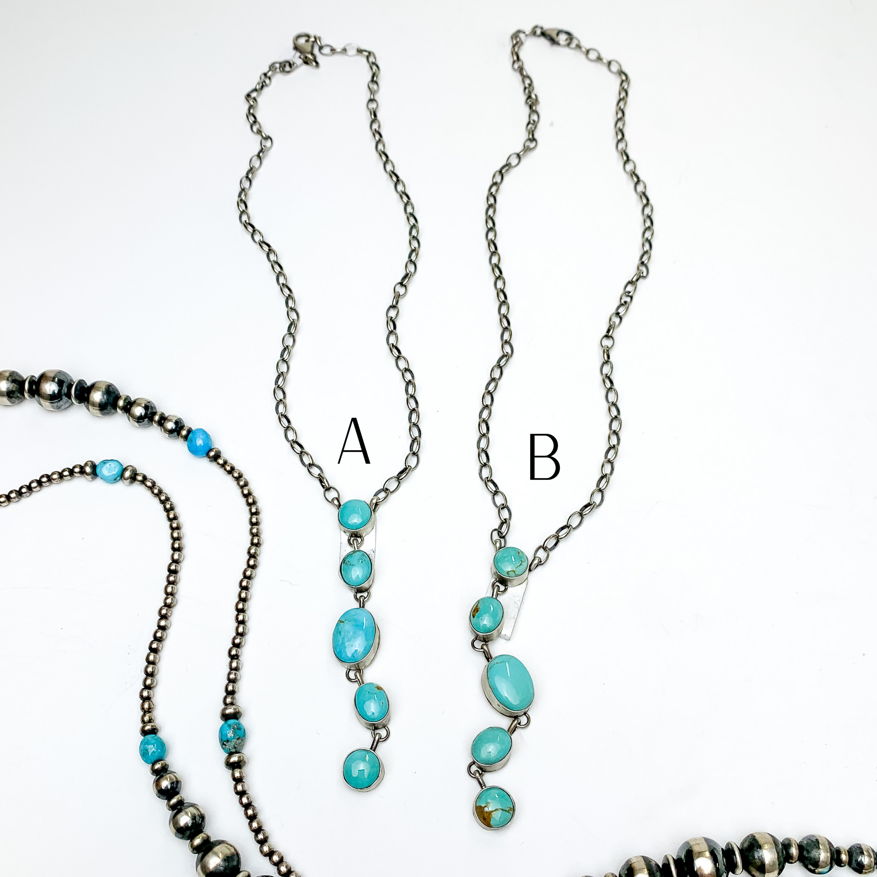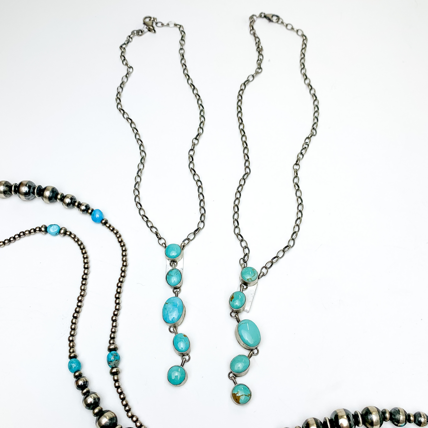 Augustine Largo | Navajo Handmade Sterling Silver Chain Lariat Necklace with 5 Kingman Turquoise Pendants