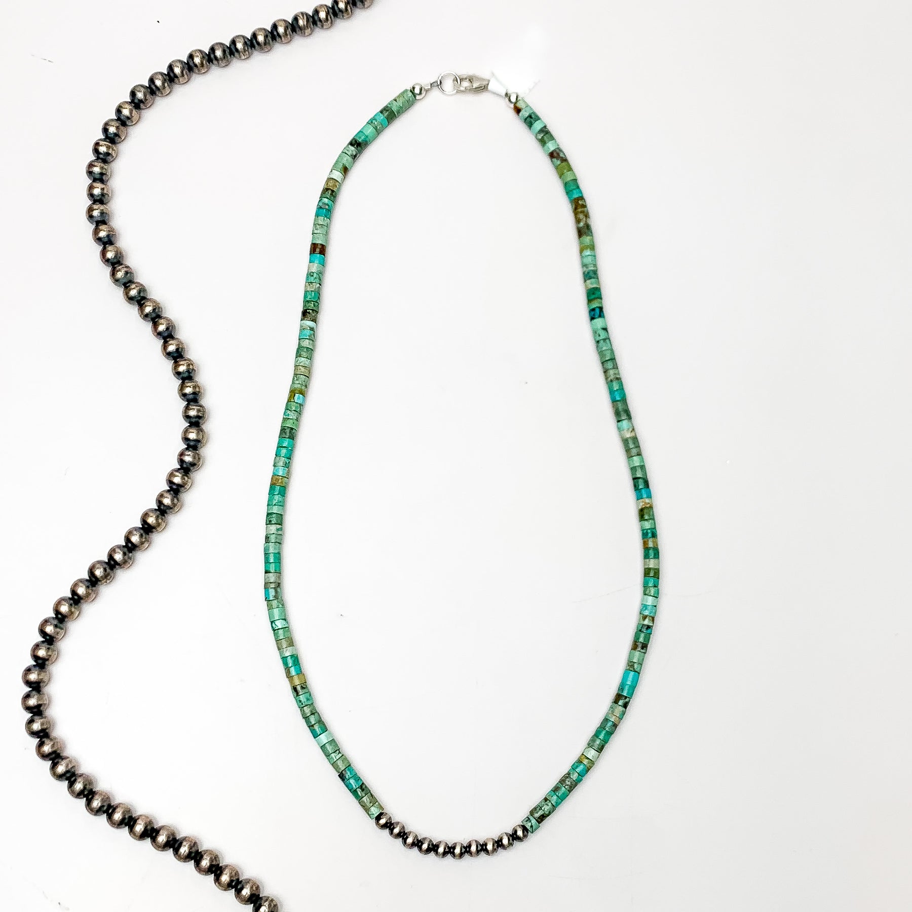 Corraine Smith | Navajo Handmade Heishi Beaded Necklace with Navajo Pearls in Kingman Turquoise
