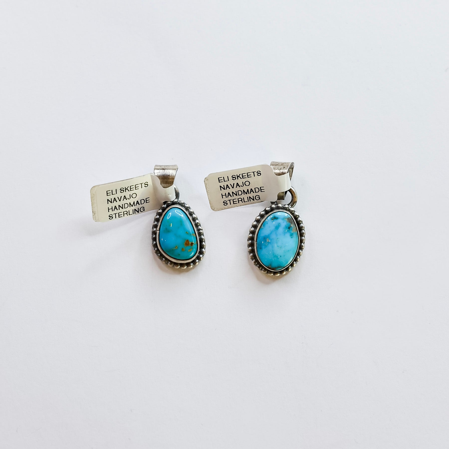 Eli Skeets | Navajo Handmade Sterling Silver Pendant with Genuine Kingman Turquoise Stone