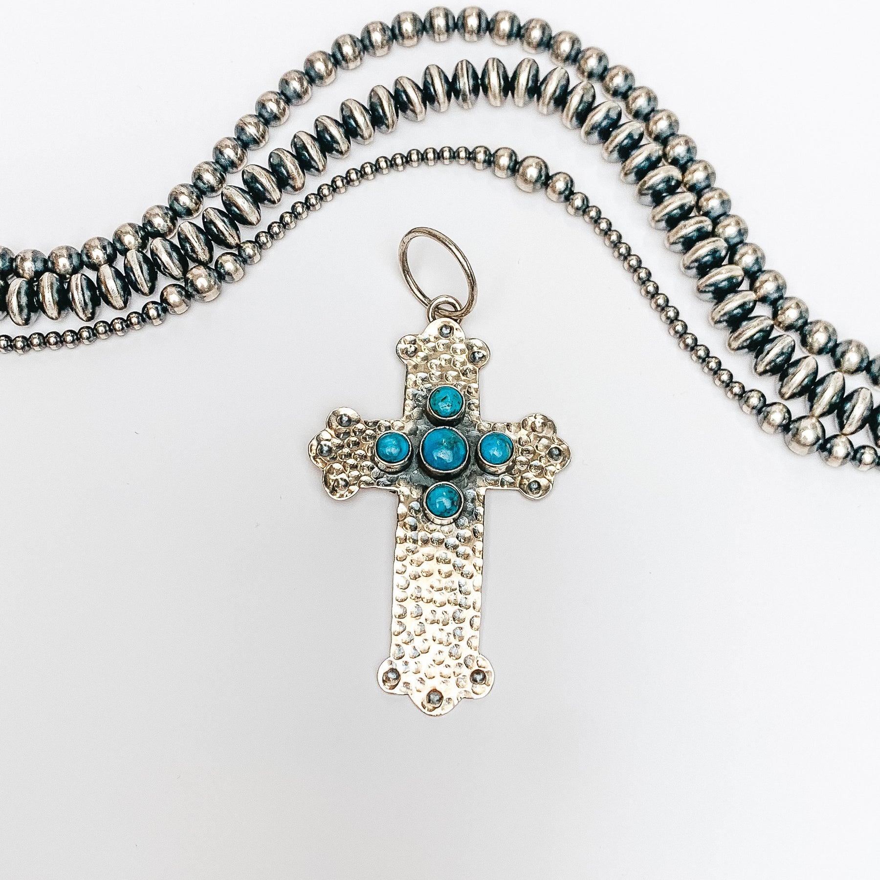 HaDa Collection | Sterling Silver Hammered Kingman Turquoise Cross Pendant