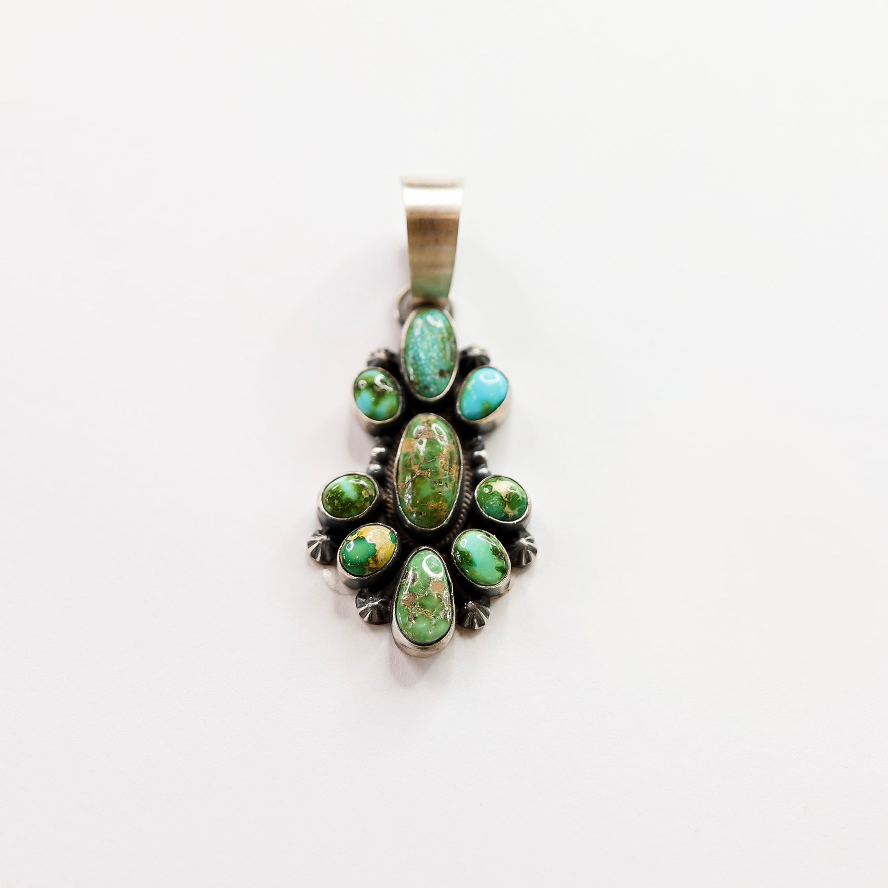 Marie Tsosie | Navajo Handmade Sterling Silver Necklace Pendant with Sonoran Gold Turquoise Stones
