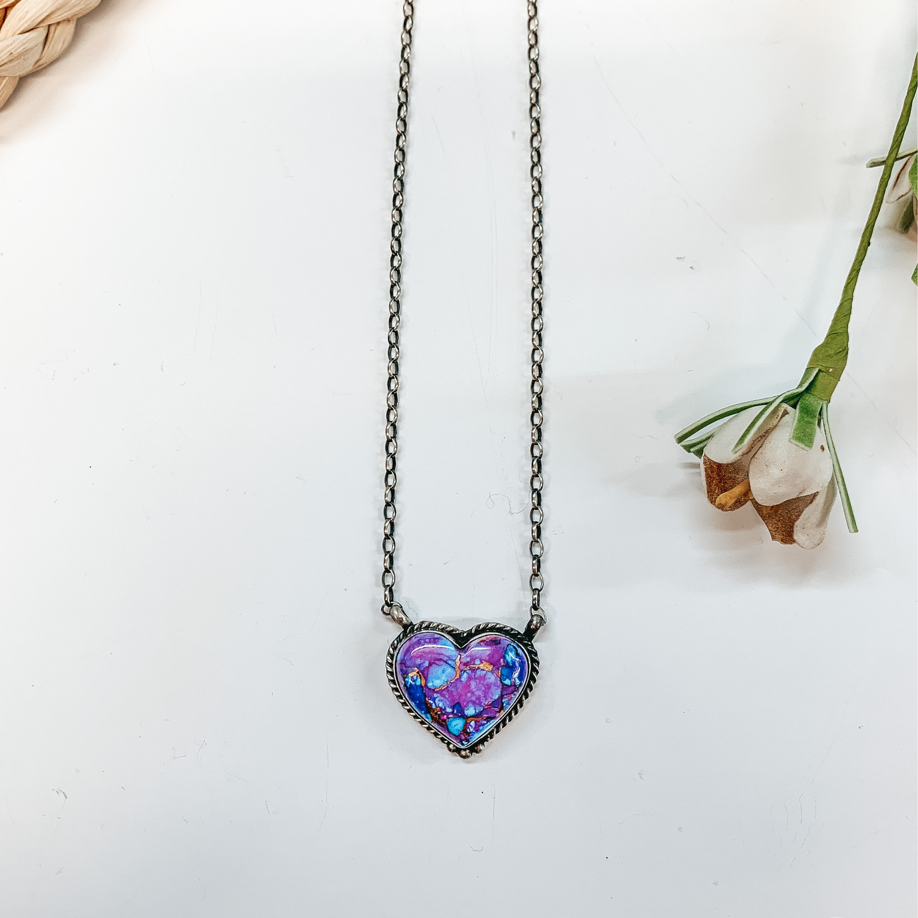 Vernon Kee | Navajo Handmade Adjustable Sterling Silver Chain Necklace with Remix Mojave Turquoise Stone and Rope Detailing Heart - Giddy Up Glamour Boutique