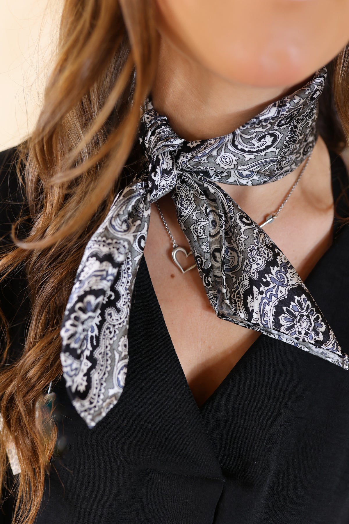 Mini Paisley Wild Rag in Black and Silver - Giddy Up Glamour Boutique