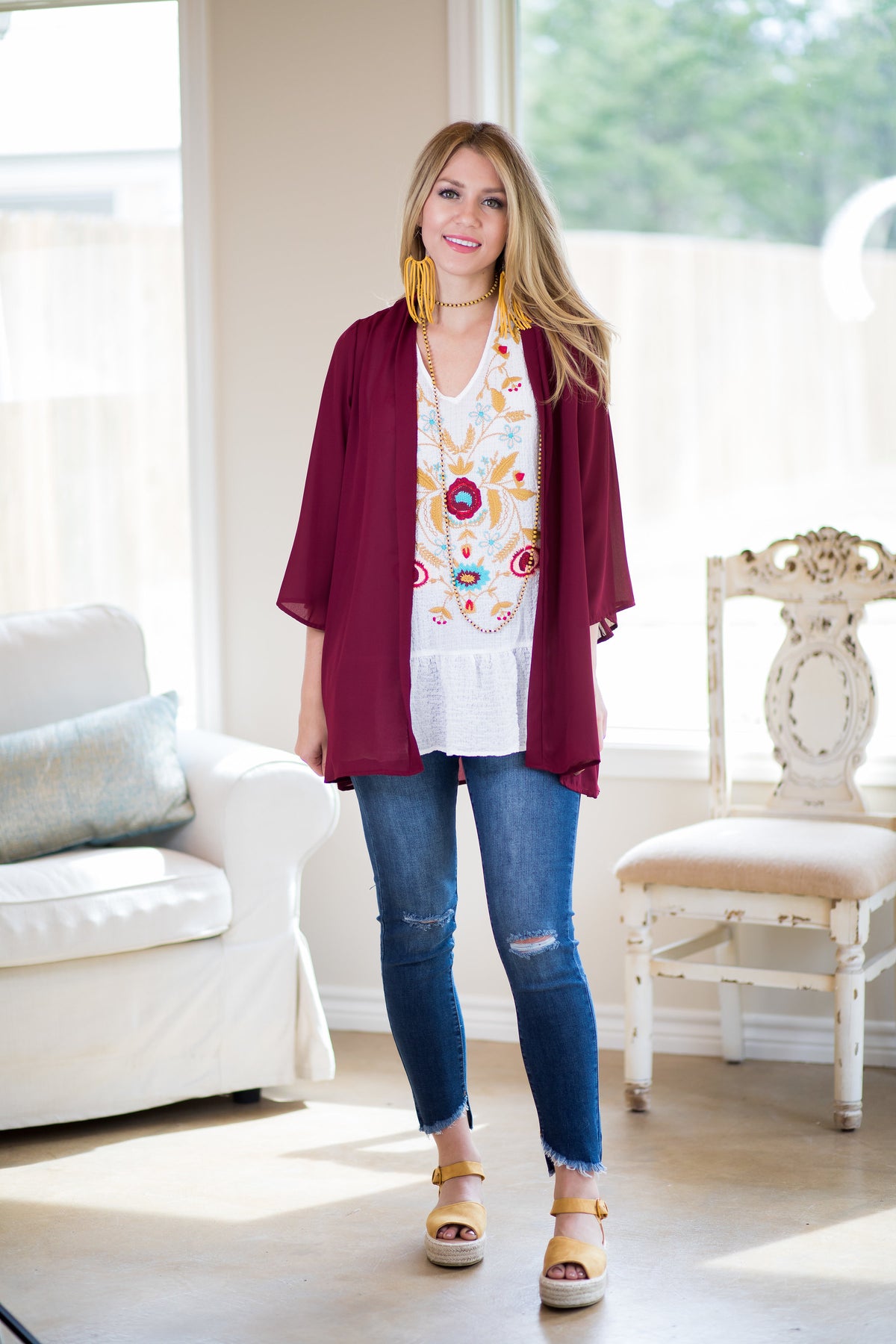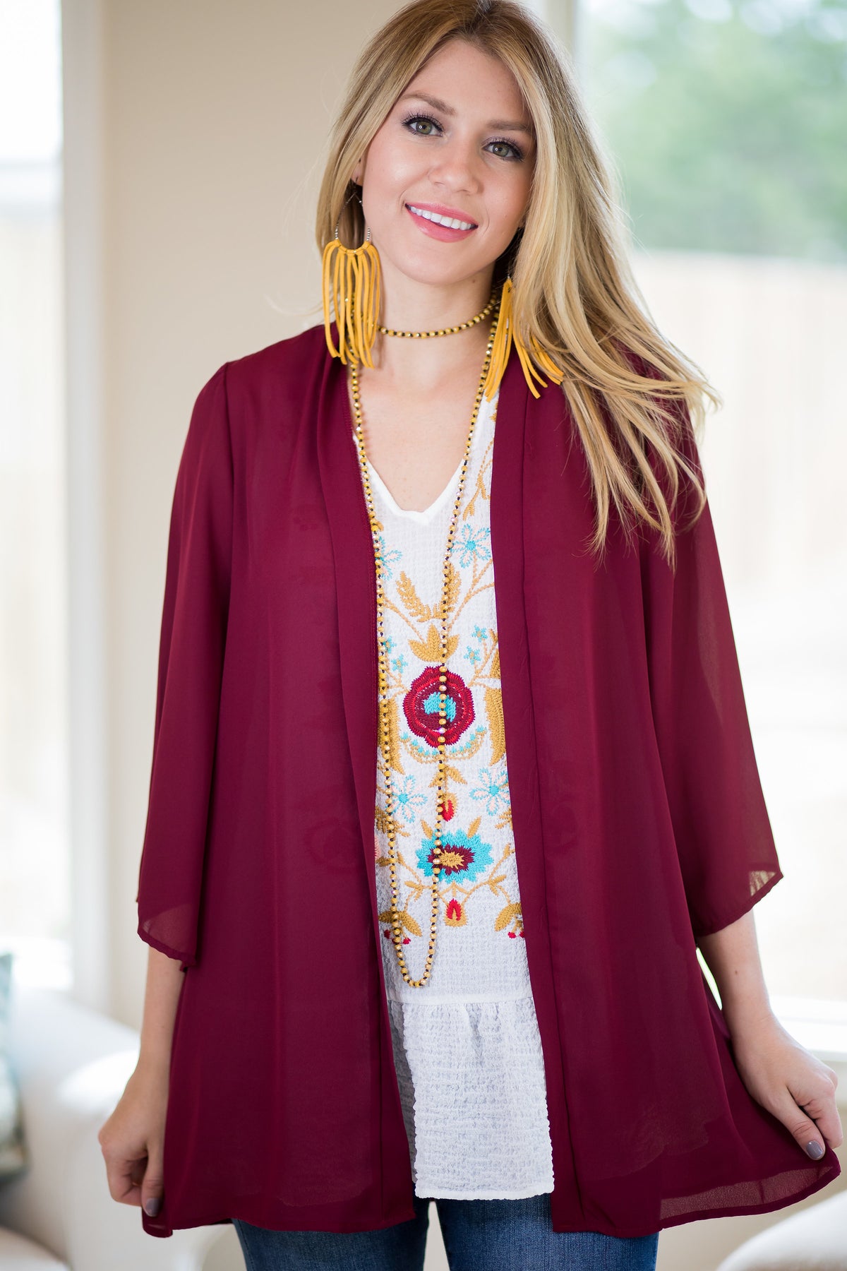 Last Chance Size Small | Can't Miss It Sheer Kimono in Maroon