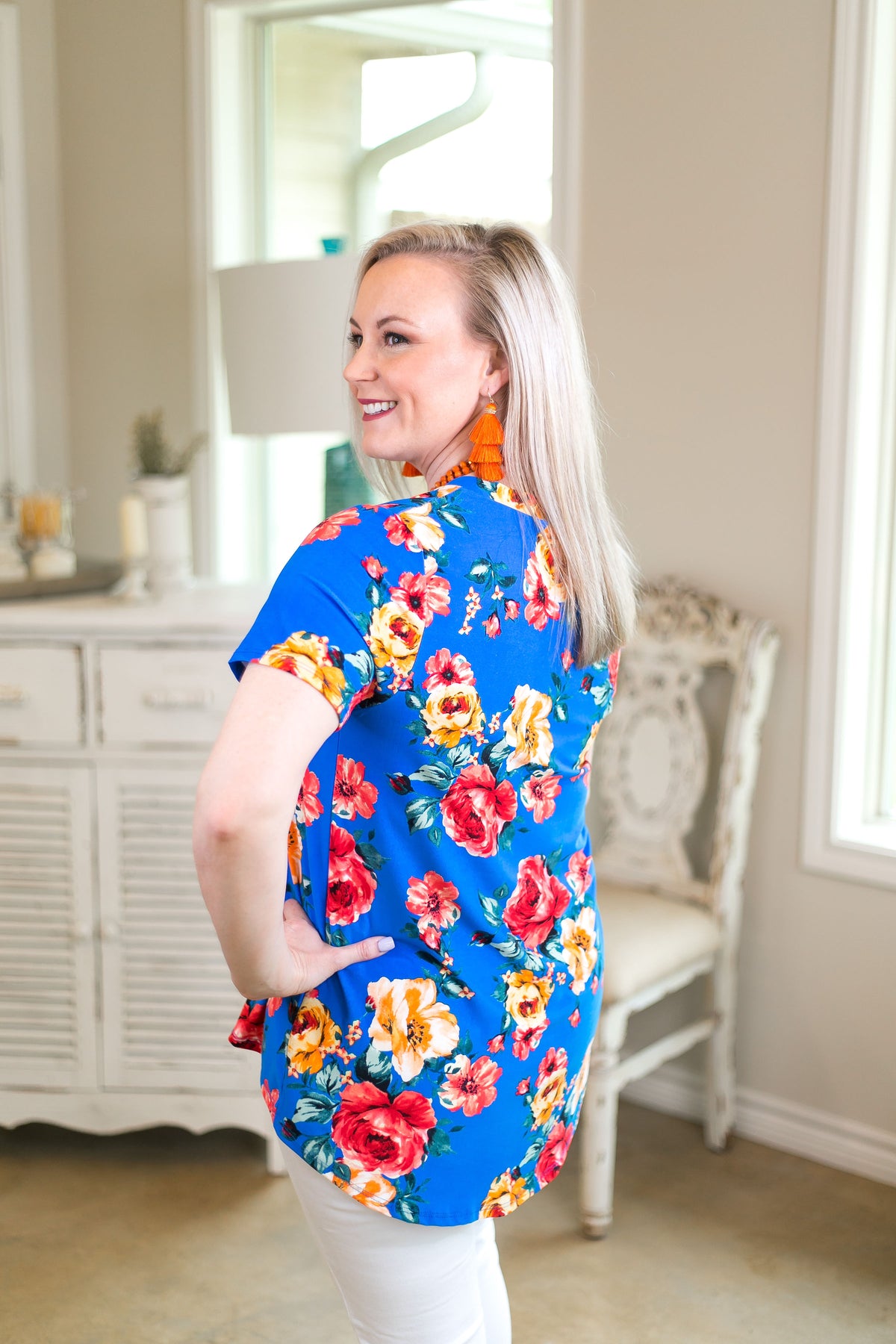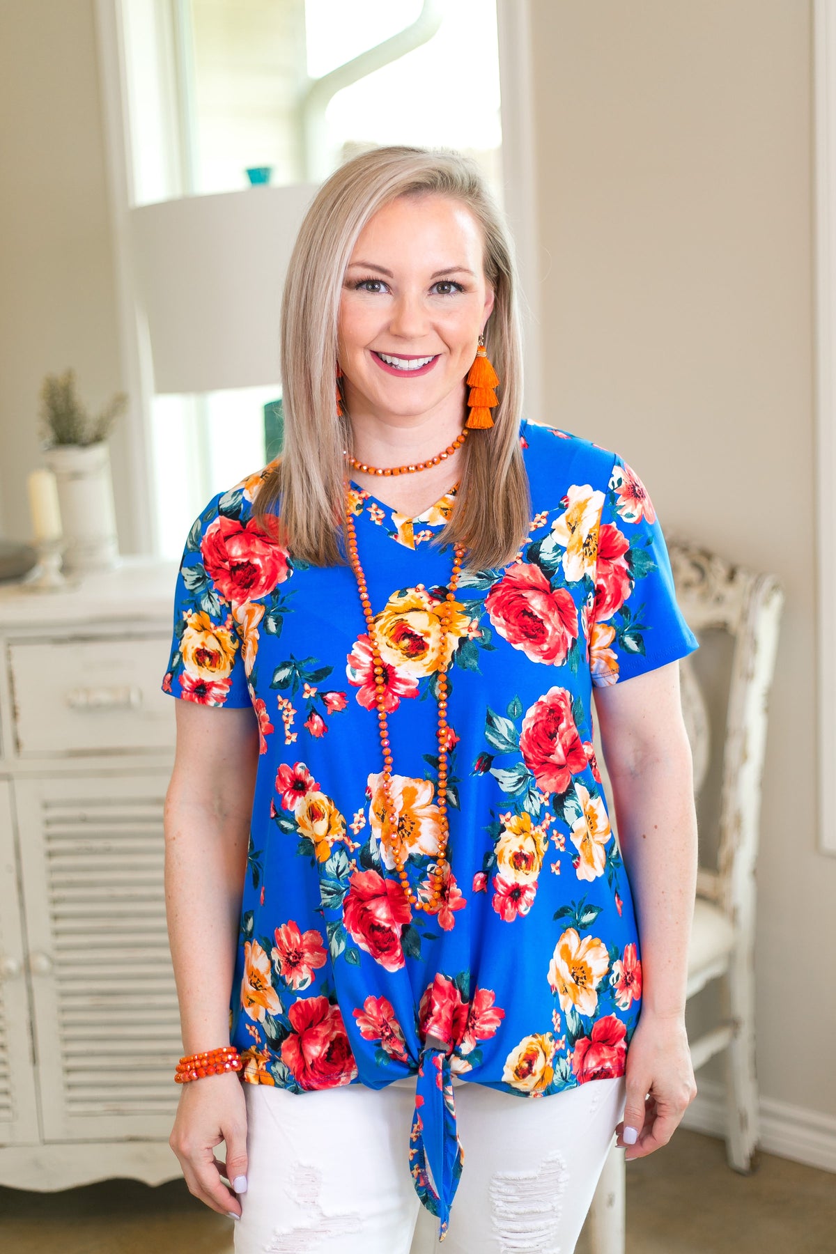 Last Chance Size Small | Girl's Getaway Floral Print Tie Top in Royal Blue