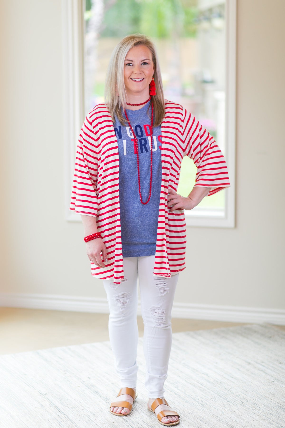 Last Chance Size Small | Living For It Stripe Cardigan with 3/4 Sleeves in Red
