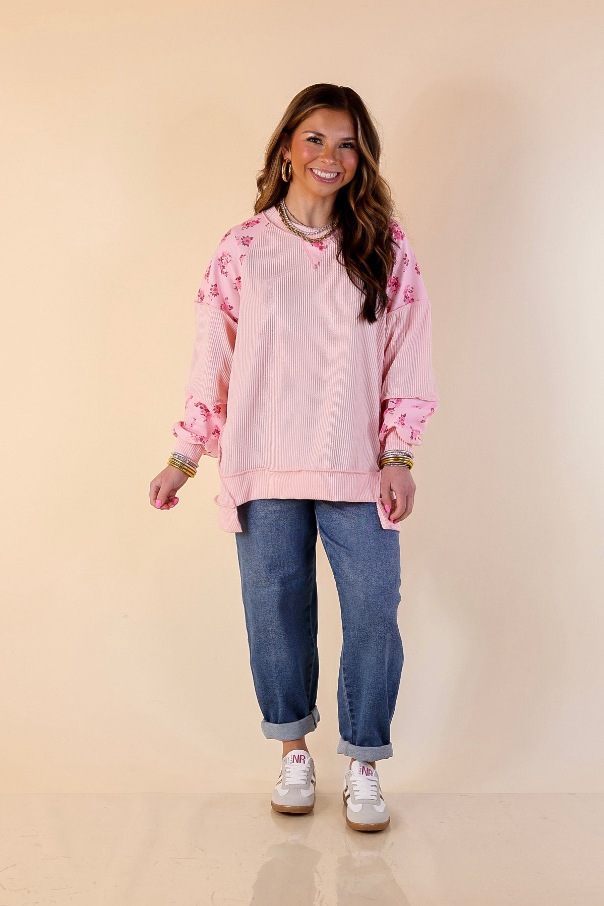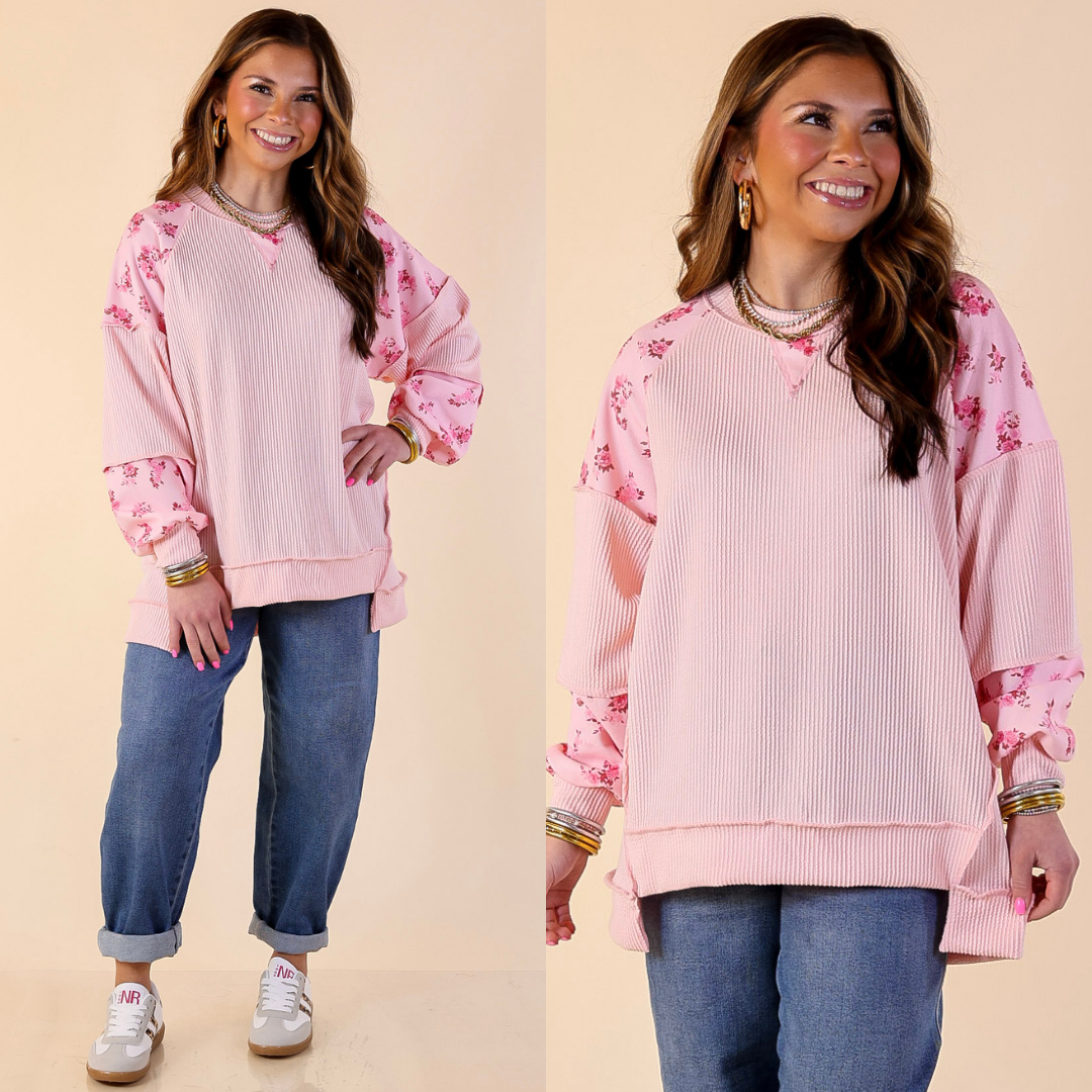 Simply Southern | Polished to a Tee Floral Patch Ribbed Long Sleeve Top in Pink
