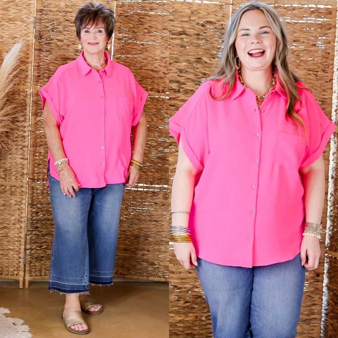 Timeless Appeal Collared Button Up Top in Hot Pink