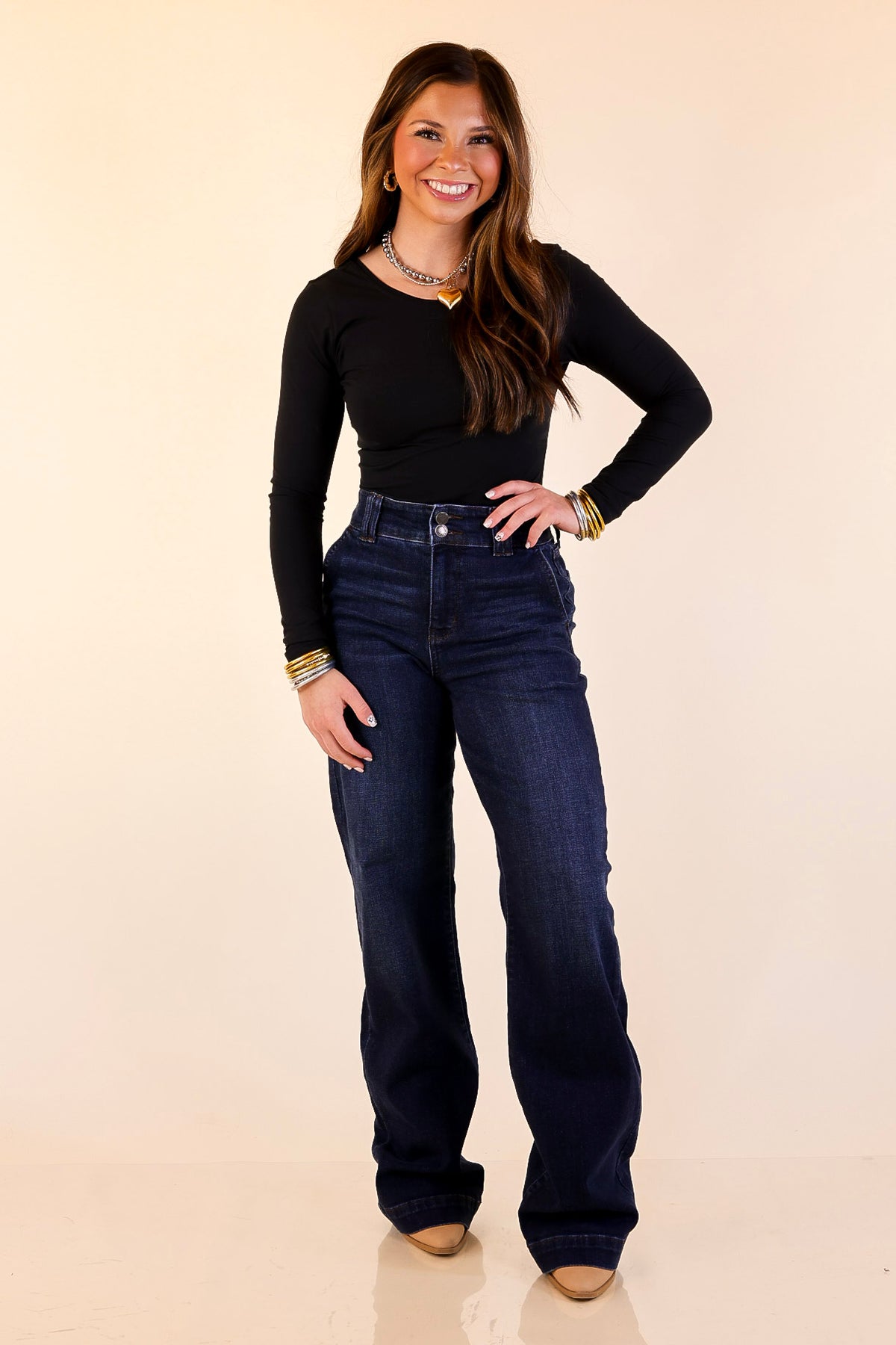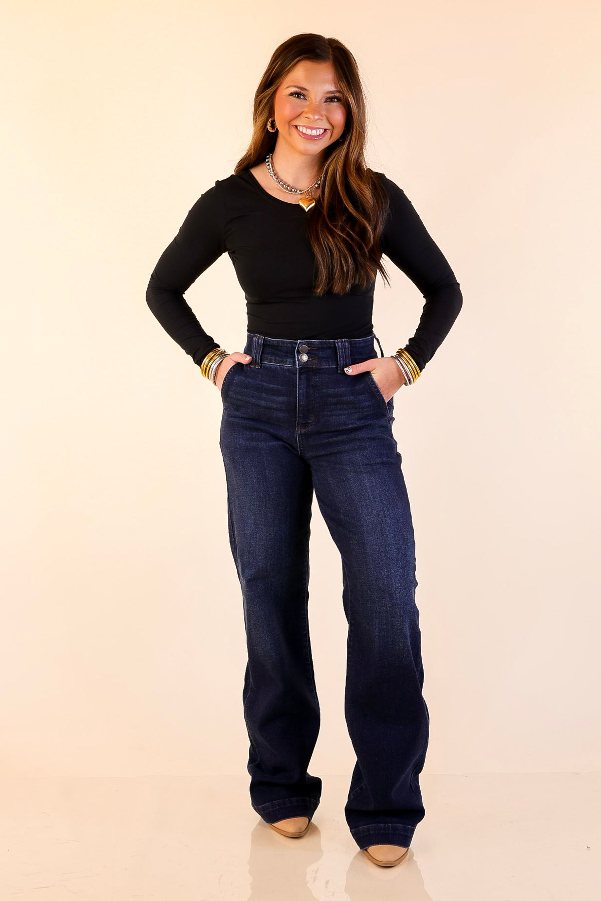 Judy Blue | Set the Standard Double Button Fly Wide Leg Trouser Jean in Dark Wash