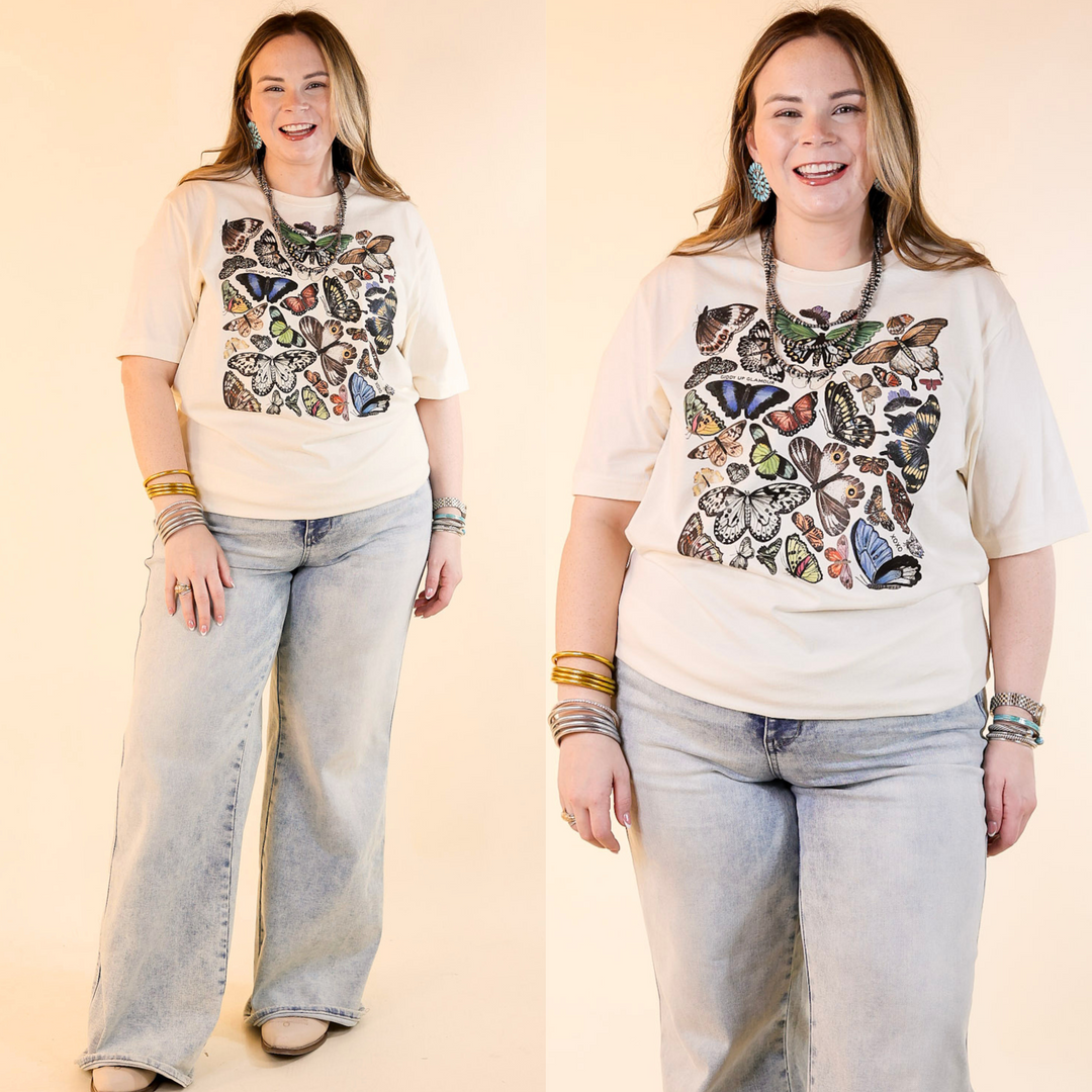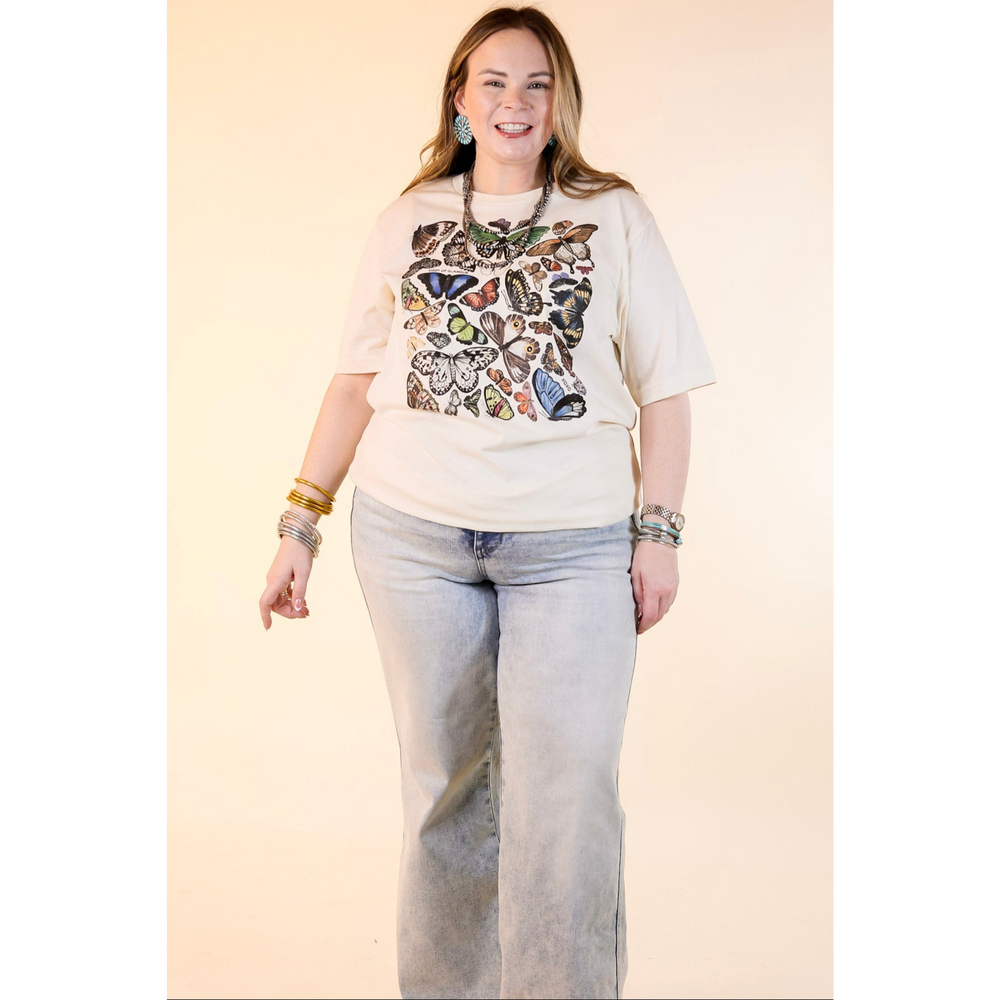 XOXO Art & Co | Butterflies Short Sleeve Graphic Tee in Natural Cream