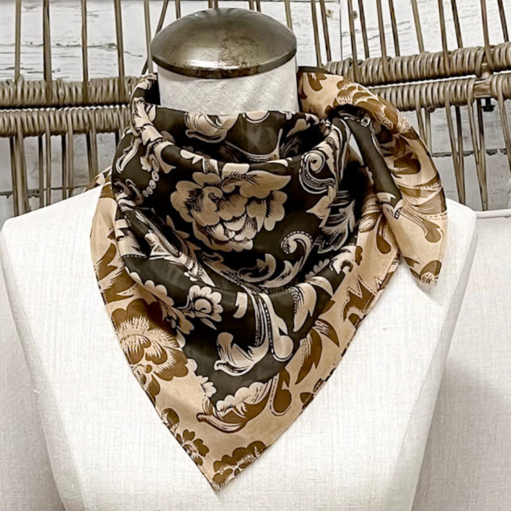 XOXO Art & Co | Saddle Flowers Shorty Wild Rag Scarf in Brown