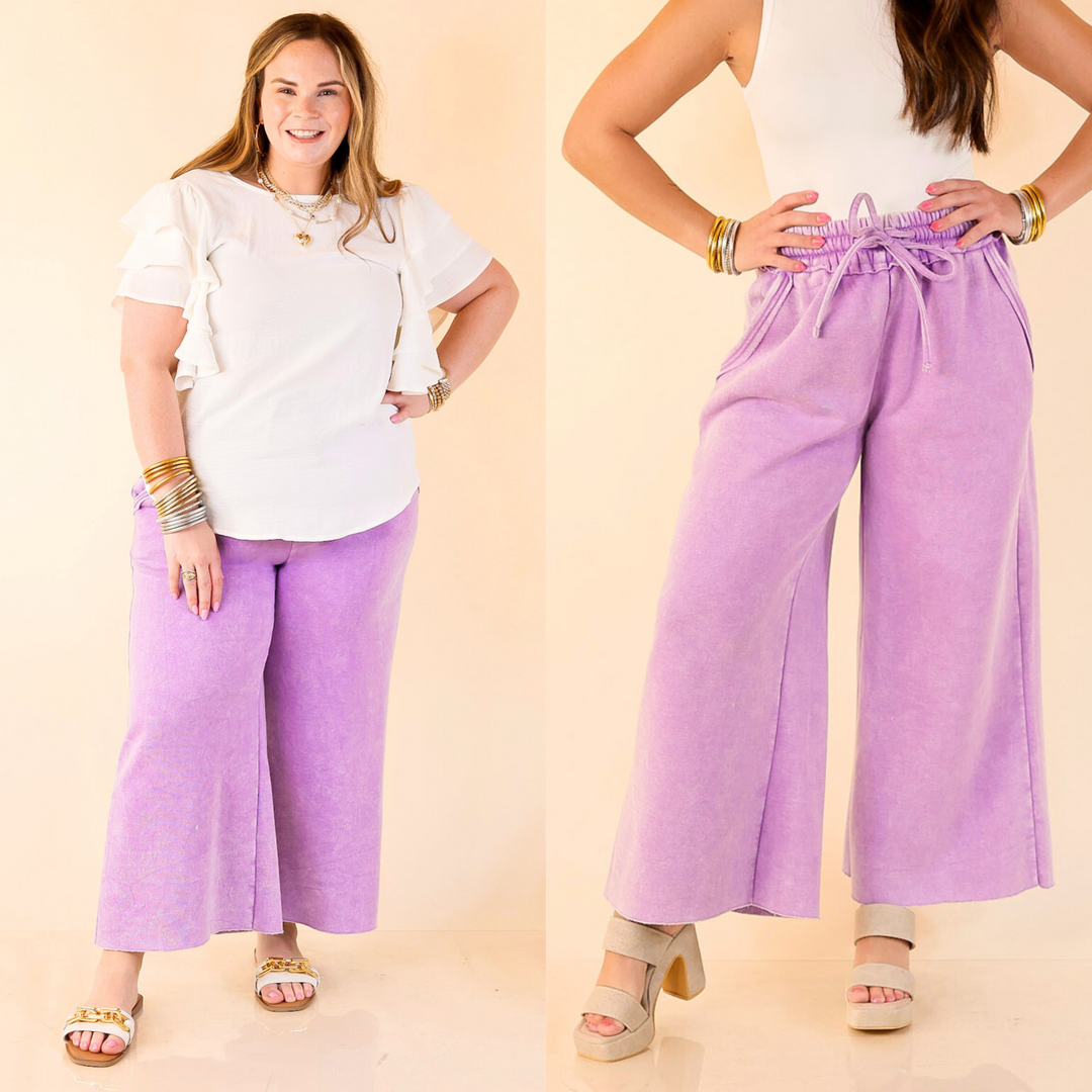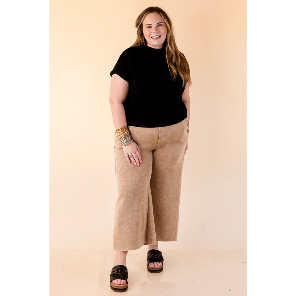 Cozy Girl Cropped Acid Washed Drawstring Pant in Brown