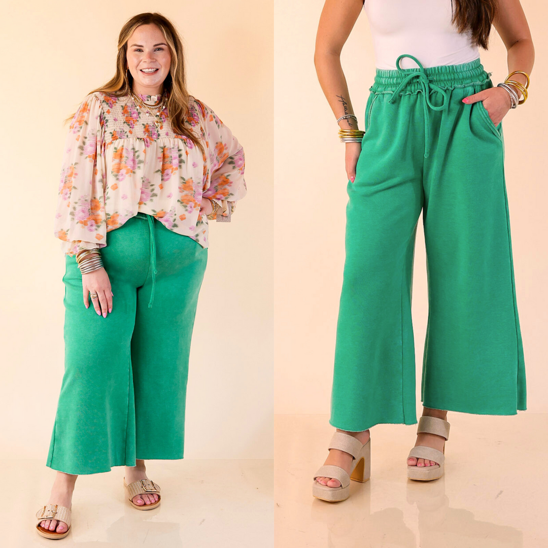 On Repeat Cropped Drawstring Woven Pants in Olive Green
