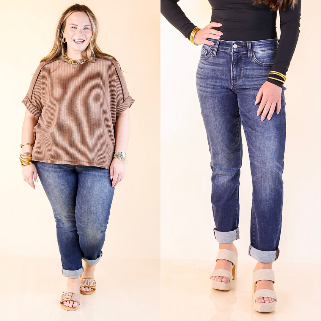 Judy Blue | Naturally Cool Cuffed Boyfriend Denim Jeans in Dark Wash