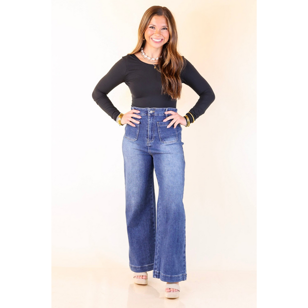 Judy Blue | Chic on the Move Cropped Wide Leg Utility with Front Patch Pocket Jean in Dark Wash