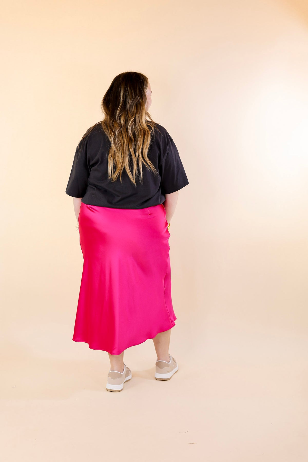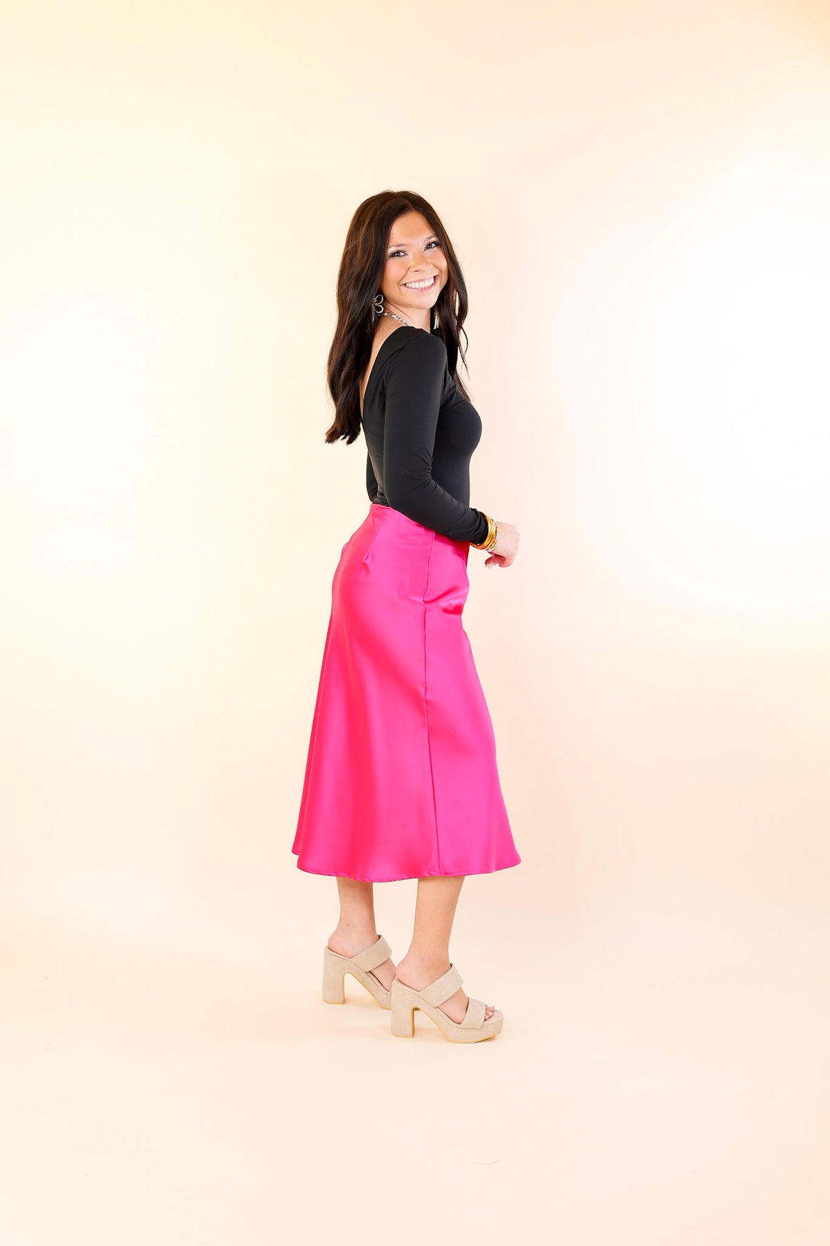 Bubbly And Blissful Satin Midi Skirt in Fuchsia Pink