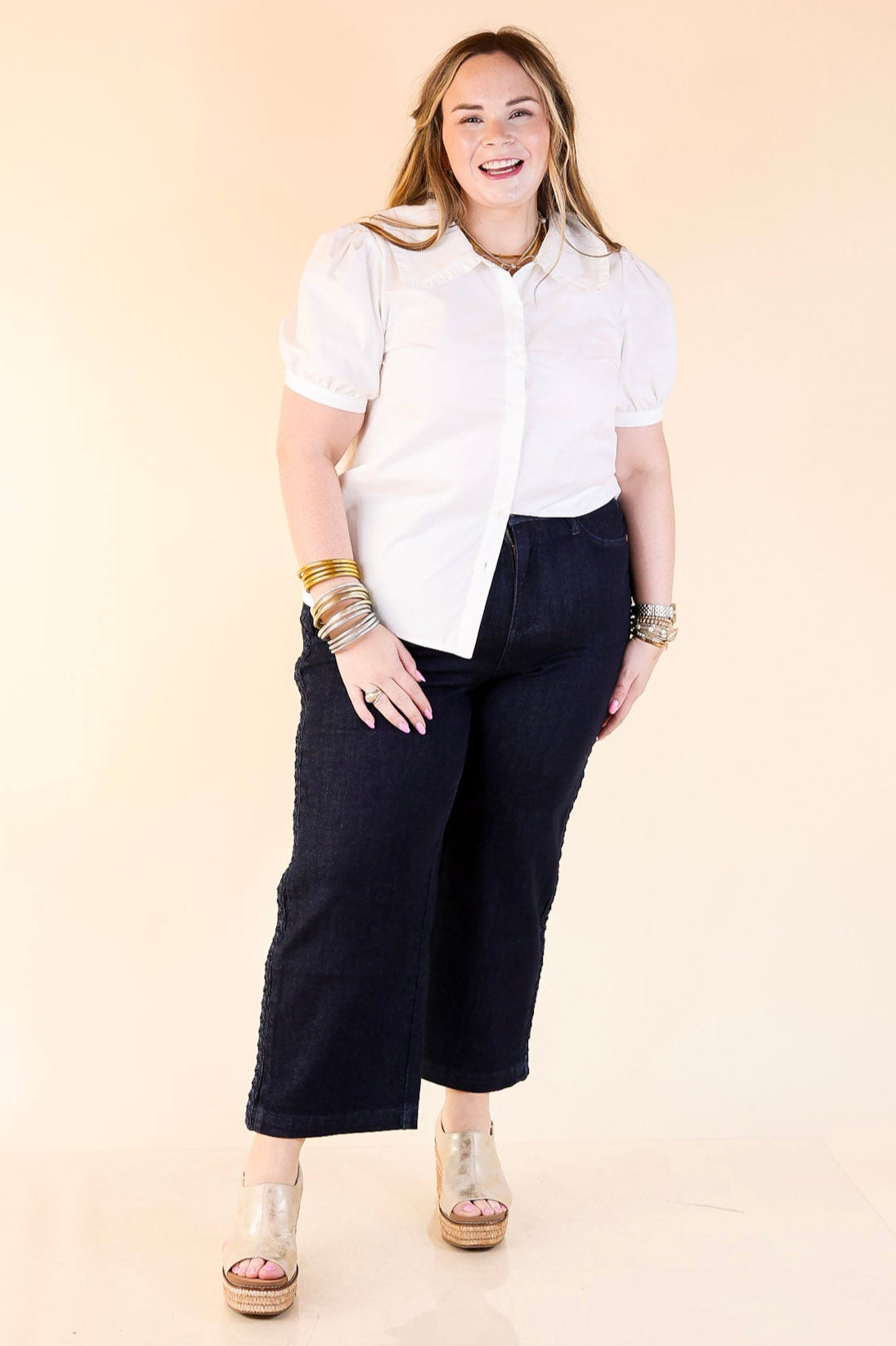 Call Me Darling Puff Sleeve Button Down With a Peter Pan Collar in White