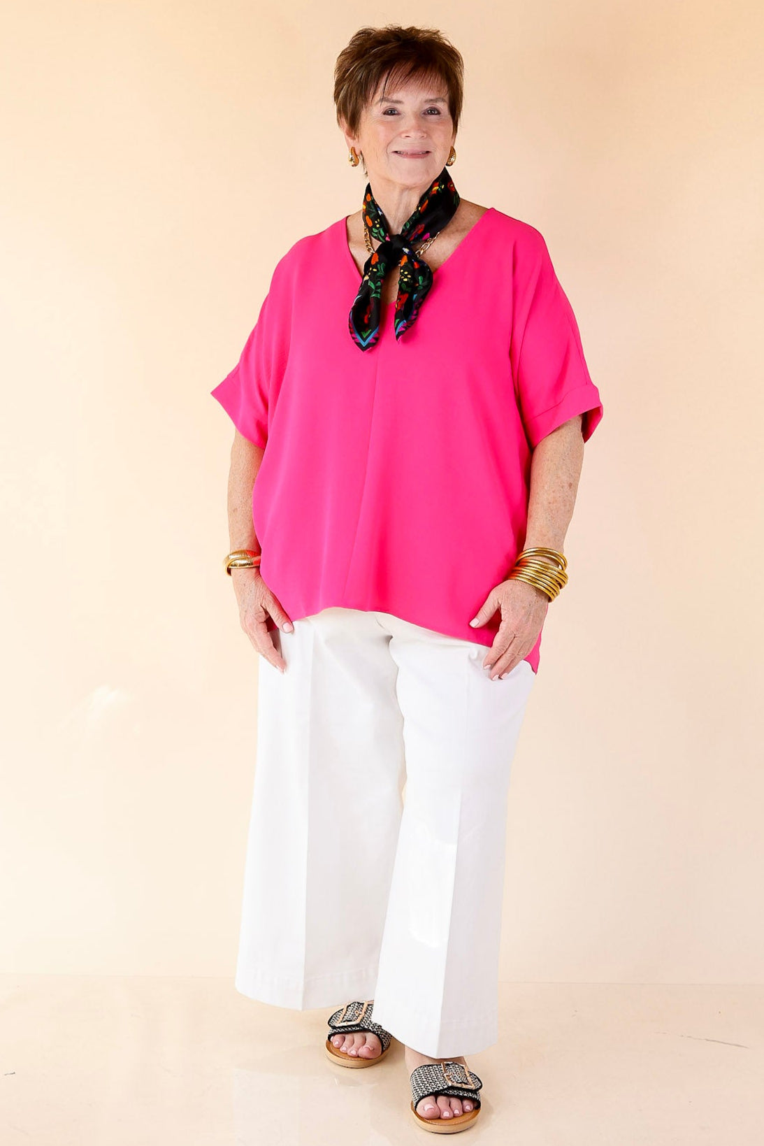 Classically Chic Short Sleeve V Neck Top in Hot Pink