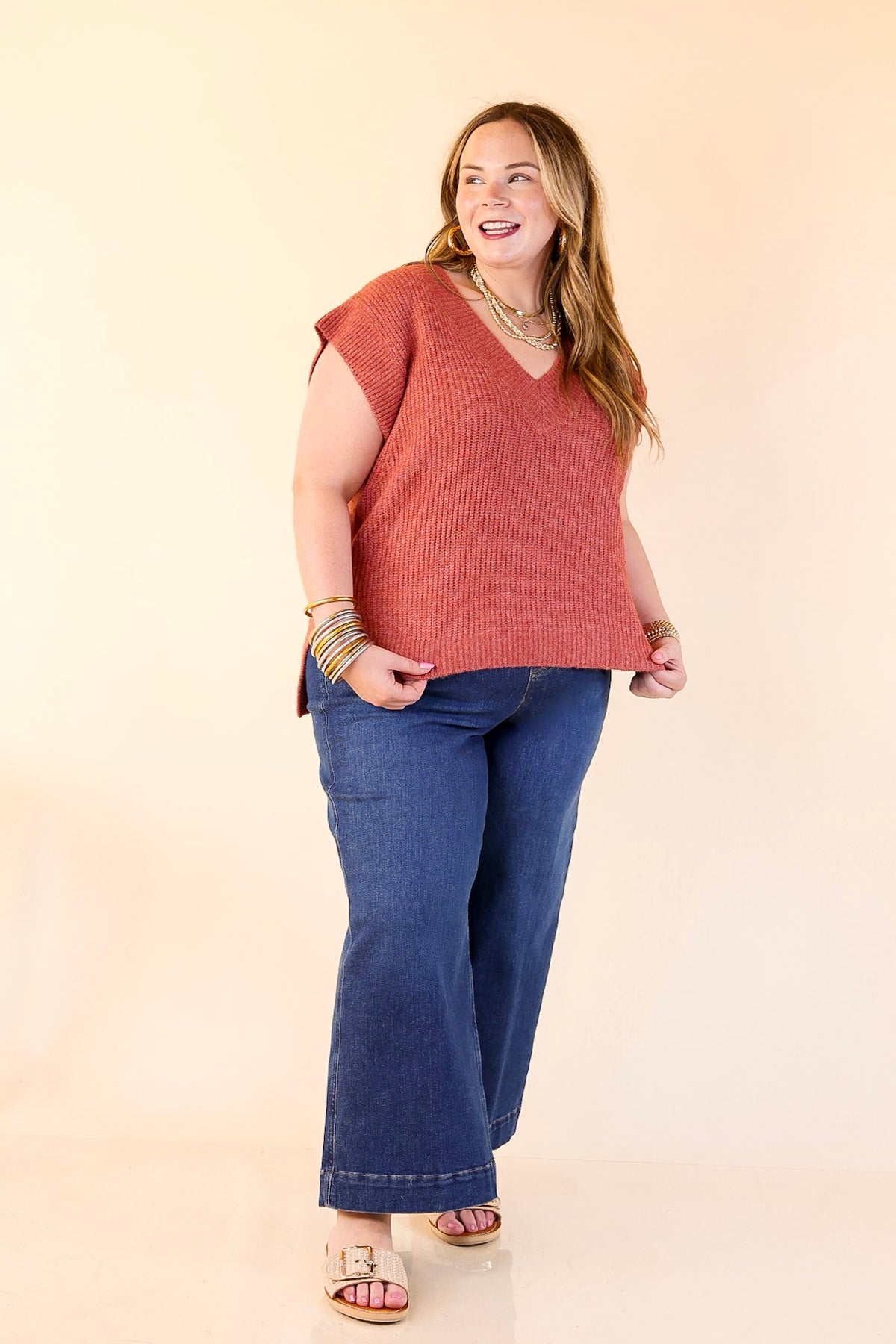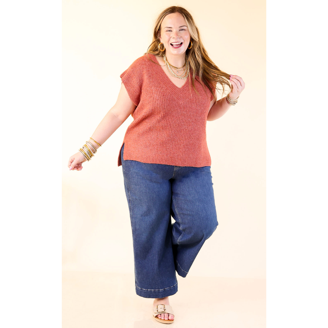 Fall For You Textured V-Neck Oversized Knit Sweater Vest Top in Rust Orange