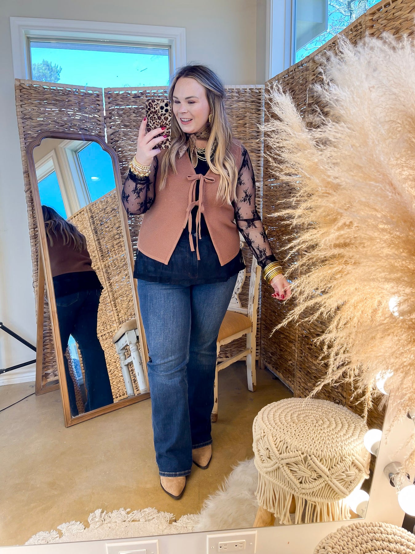 Elevate your wardrobe with the Pretty and Poised top, a timeless blend of femininity and sophistication. Crafted from delicate lace with a floral print, this top exudes effortless charm. The flattering V-neckline and ruffle collar add a romantic touch, while the long sleeves provide a polished, versatile look. Perfect for layering or wearing on its own, this stunning piece transitions seamlessly from day to night.